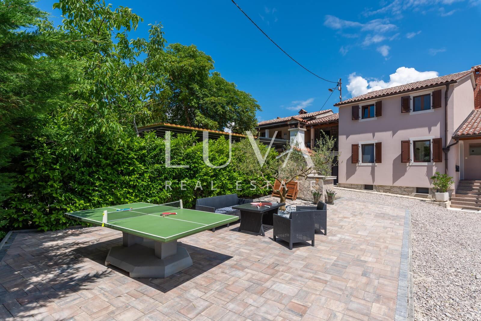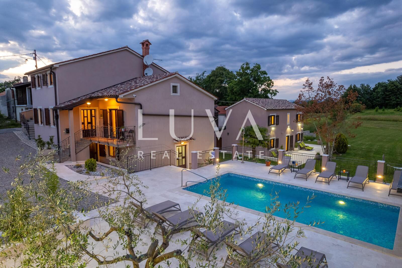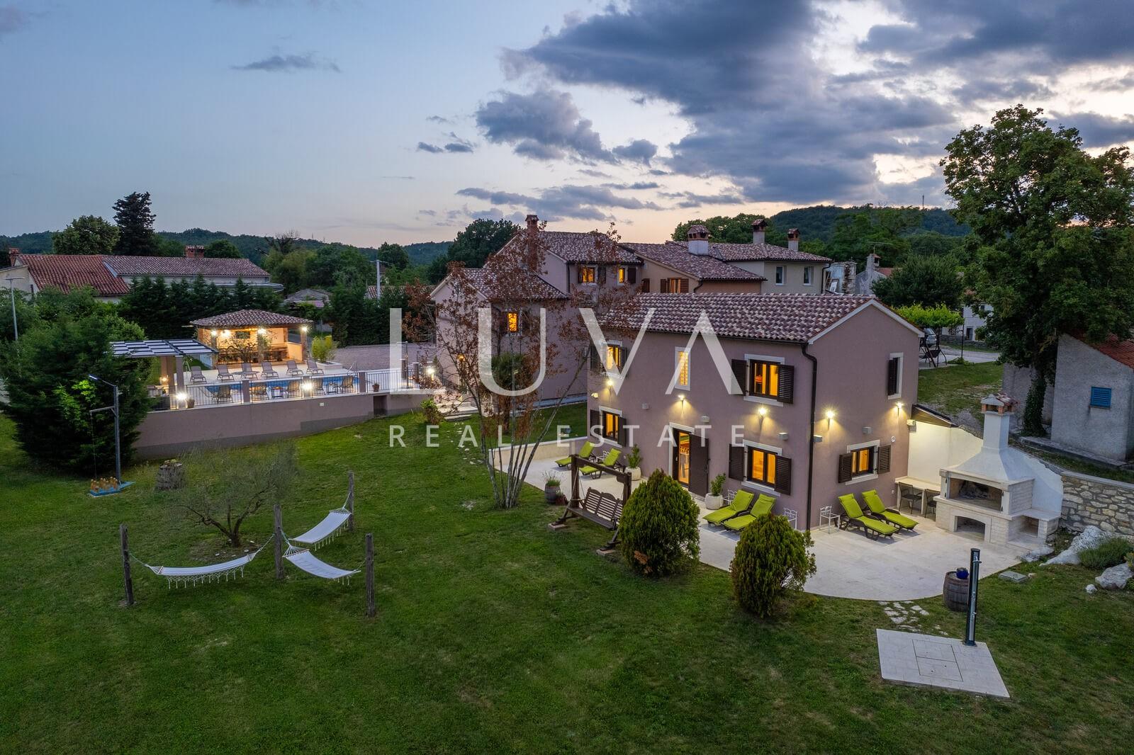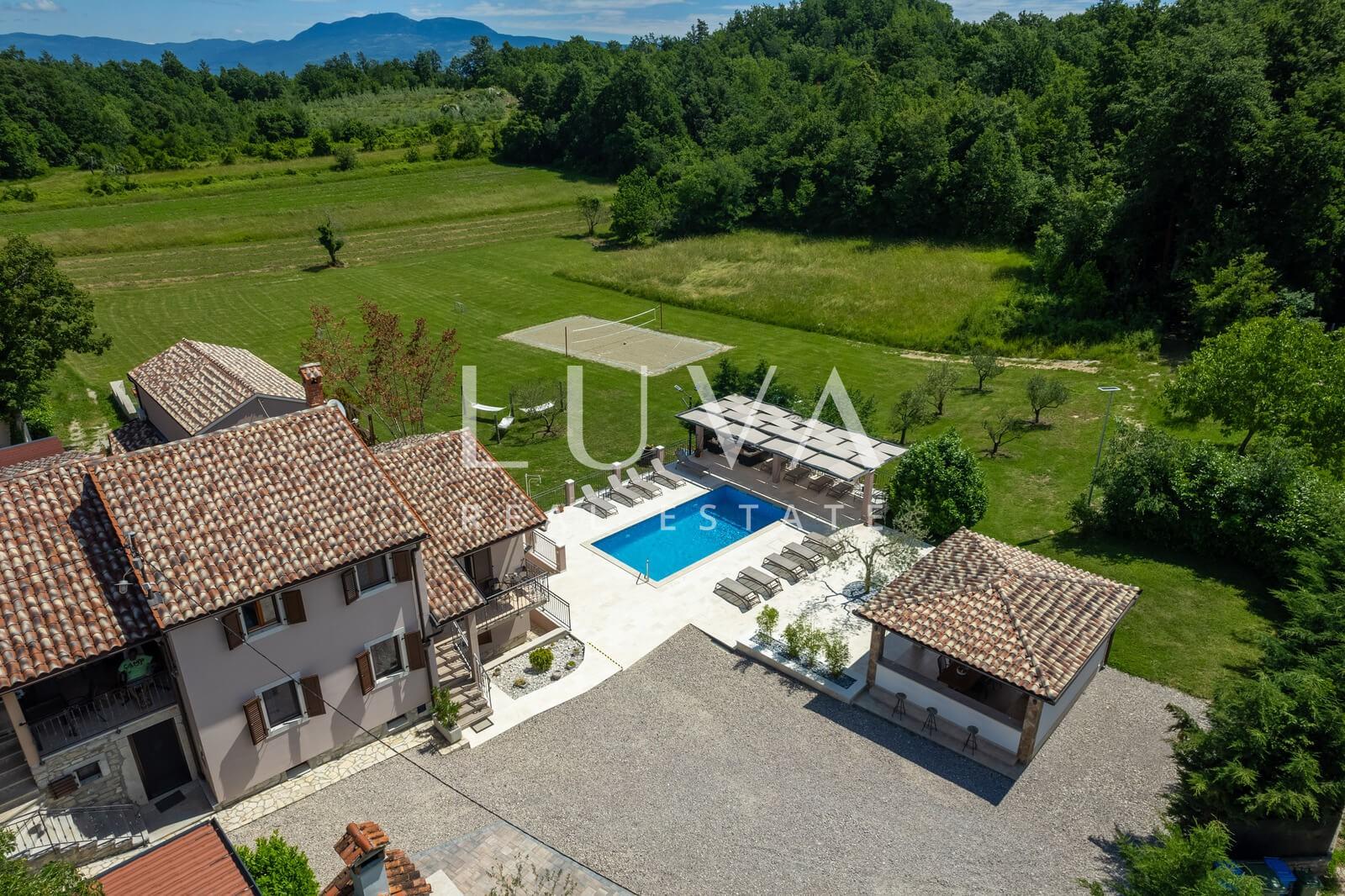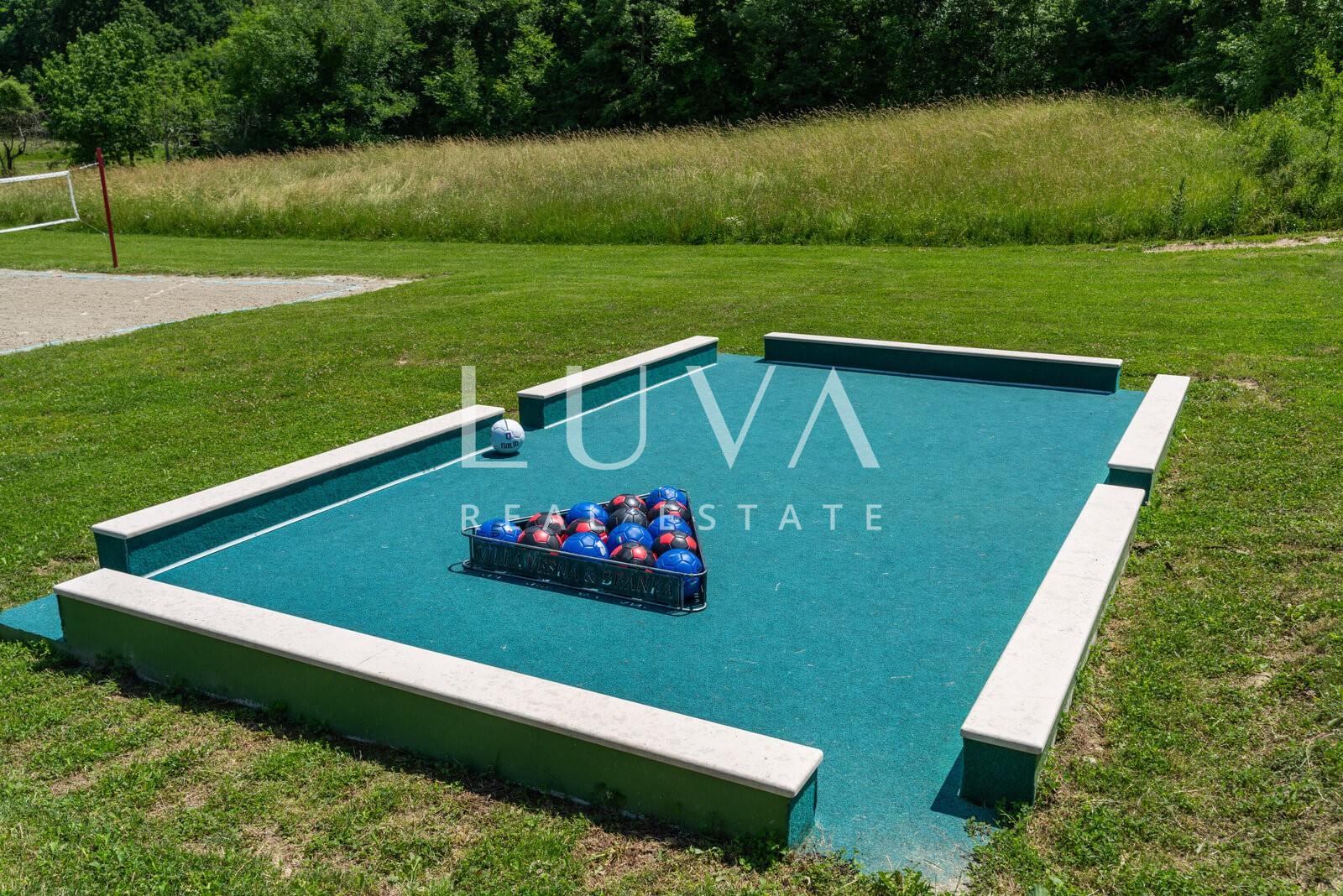 Im Herzen des grünen Istriens, in der Nähe des malerischen Dorfes Pićan, befindet sich dieses idyllische Anwesen, das natürliche Ruhe, authentische Architektur und modernen Komfort perfekt vereint. Auf einem sanften Hügel gelegen und von üppigem Grün umgeben, erstreckt sich das Anwesen über 5.000 m² und bietet absolute Privatsphäre sowie ein Gefühl vollkommener Entspannung. Auf dem Grundstück befinden sich drei renovierte Steinhäuser, ein großer Pool und ein professioneller Tennisplatz – ideal als privater Rückzugsort oder als Investition im Tourismussektor.