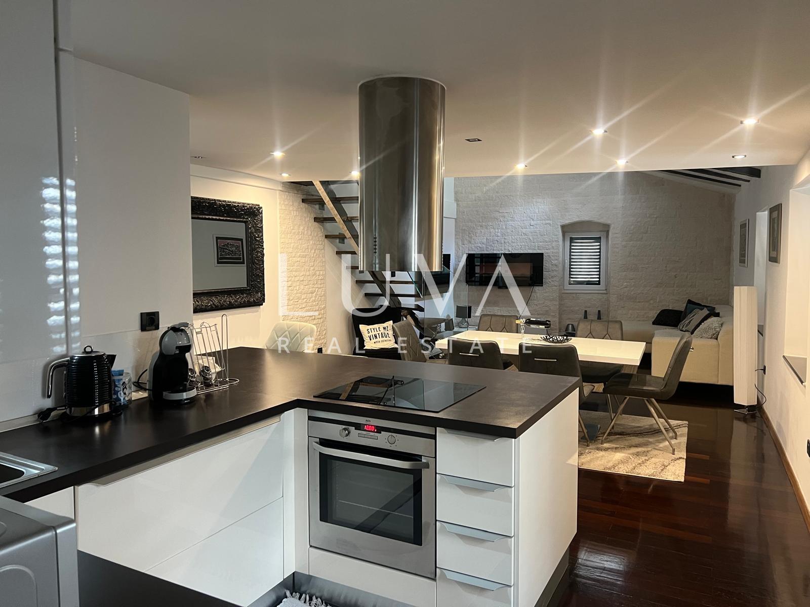 Im historischen Zentrum von Šibenik, nur wenige Schritte von der eindrucksvollen Kathedrale des Heiligen Jakobus entfernt, befindet sich eine elegante Wohnung, die den Charme alter Steingassen mit dem Komfort modernen Wohnens verbindet. Auf sorgfältig gestalteten 90 m² bietet sie die ideale Kombination aus Ruhe, Geschichte und Luxus.