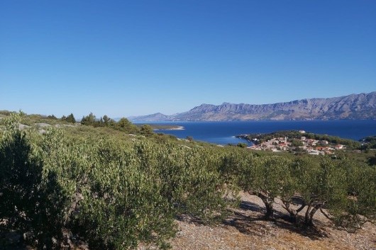 Brač, Povlja, Grundstück mit Olivenhain und Meerblick, 3839 m2