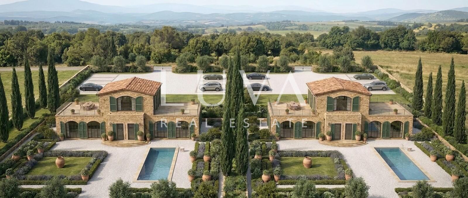 Das Projekt umfasst zwei separate Villen im mediterranen Stil (jeweils drei Apartments) mit gepflegter Außenanlage, gelegen in ruhiger Lage nur 350 Meter vom Meer entfernt. Beim Bau werden hochwertige Materialien verwendet, darunter großformatige Fliesen, Sanitärausstattung von Villeroy & Boch, hochwertiger Naturstein für die Fassade und weitere Qualitätsmaterialien.