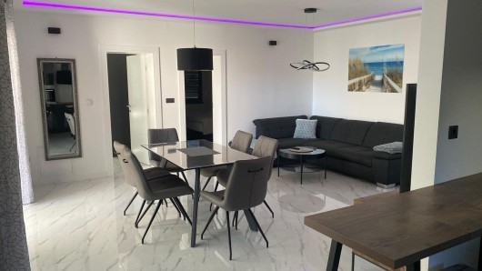 Zum Verkauf steht ein Luxushaus mit Pool im ruhigen Ort Srima, das an das beliebte Reiseziel Vodice an der dalmatinischen Küste grenzt. Das Haus befindet sich auf einem vollständig eingezäunten Grundstück von 200 m², nur wenige Schritte vom Meer entfernt. Fertiggestellt im Jahr 2018, erstreckt sich das Haus über 200 m² auf zwei Etagen und ist in modernem Stil eingerichtet. Vor dem Haus befindet sich ein Außenpool, daneben ein Jacuzzi und ein Esstisch.