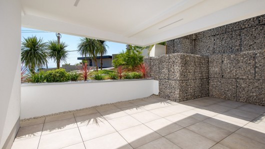 Im Obergeschoss befinden sich zwei luxuriöse Schlafzimmer, jeweils mit eigenem Bad und Zugang zu überdachten Terrassen mit beeindruckender Aussicht.