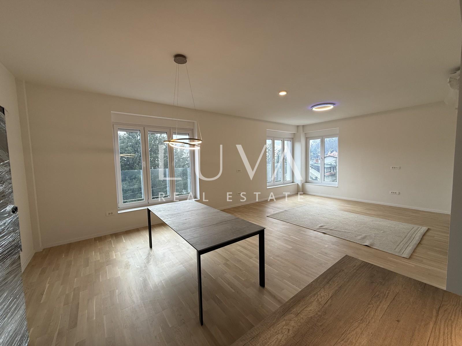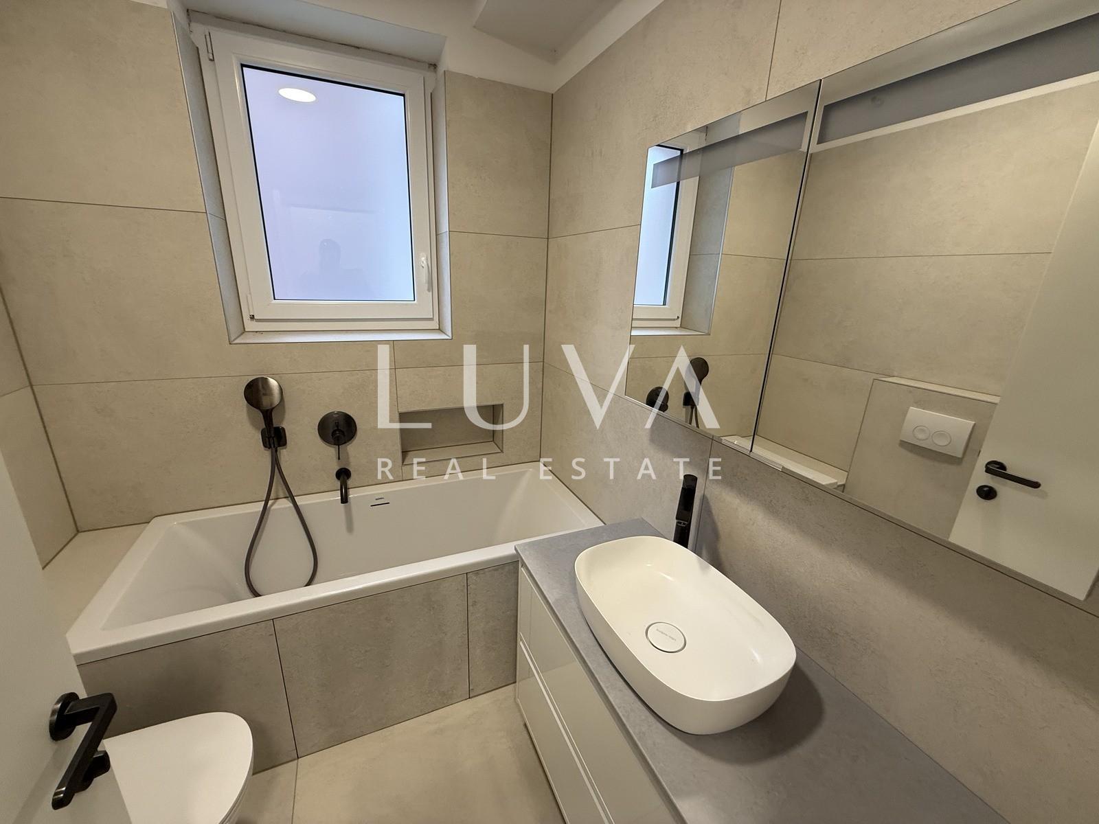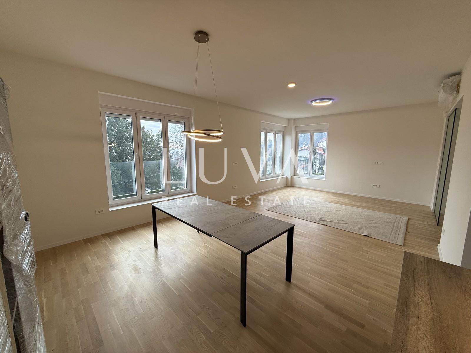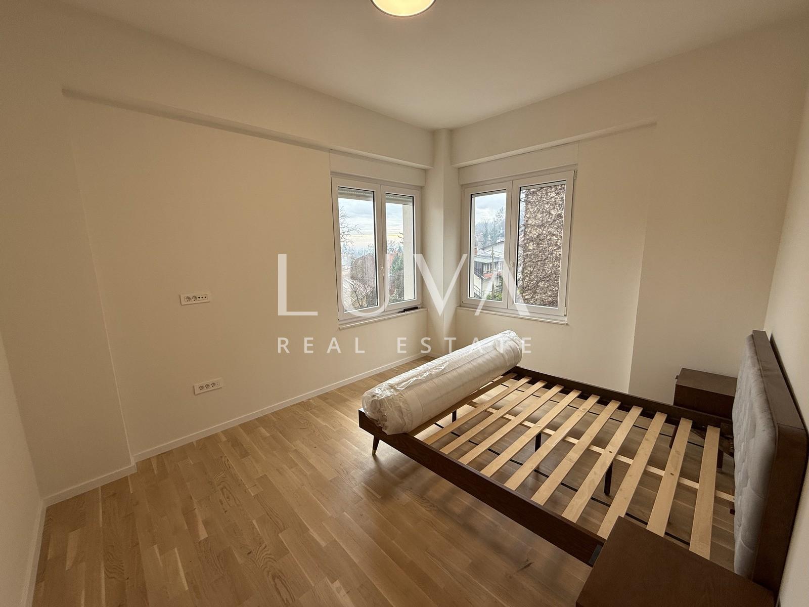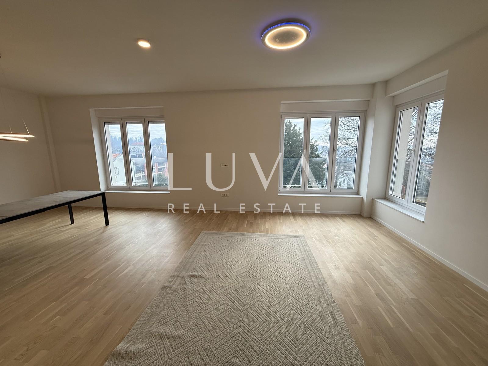 Steht eine unmöblierte Vierzimmerwohnung mit einer Gesamtfläche von 120 m², gelegen im zweiten Stock eines kleineren Wohngebäudes mit insgesamt zwei Wohnungen, in einer ruhigen Sackgasse in der Mallinova-Straße. Die Wohnung wurde im Jahr 2025 vollständig renoviert, wobei alle Installationen, Böden, Decken, Wände sowie die äußere PVC-Fenster- und Türanlage erneuert wurden, sodass es sich praktisch um eine neue Wohnung in einem bestehenden Gebäude handelt.