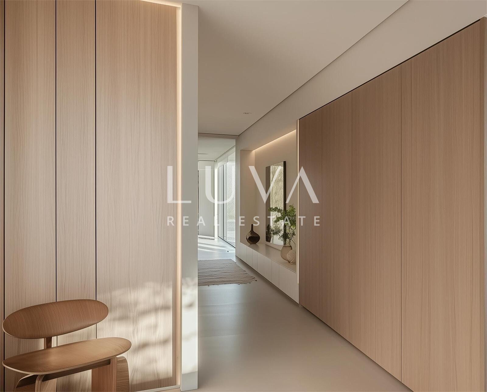 Heating and cooling are provided via a heat pump system, ensuring energy efficiency and comfortable temperatures throughout the year. Aluminum joinery further emphasizes the contemporary architectural style and durability of the property.