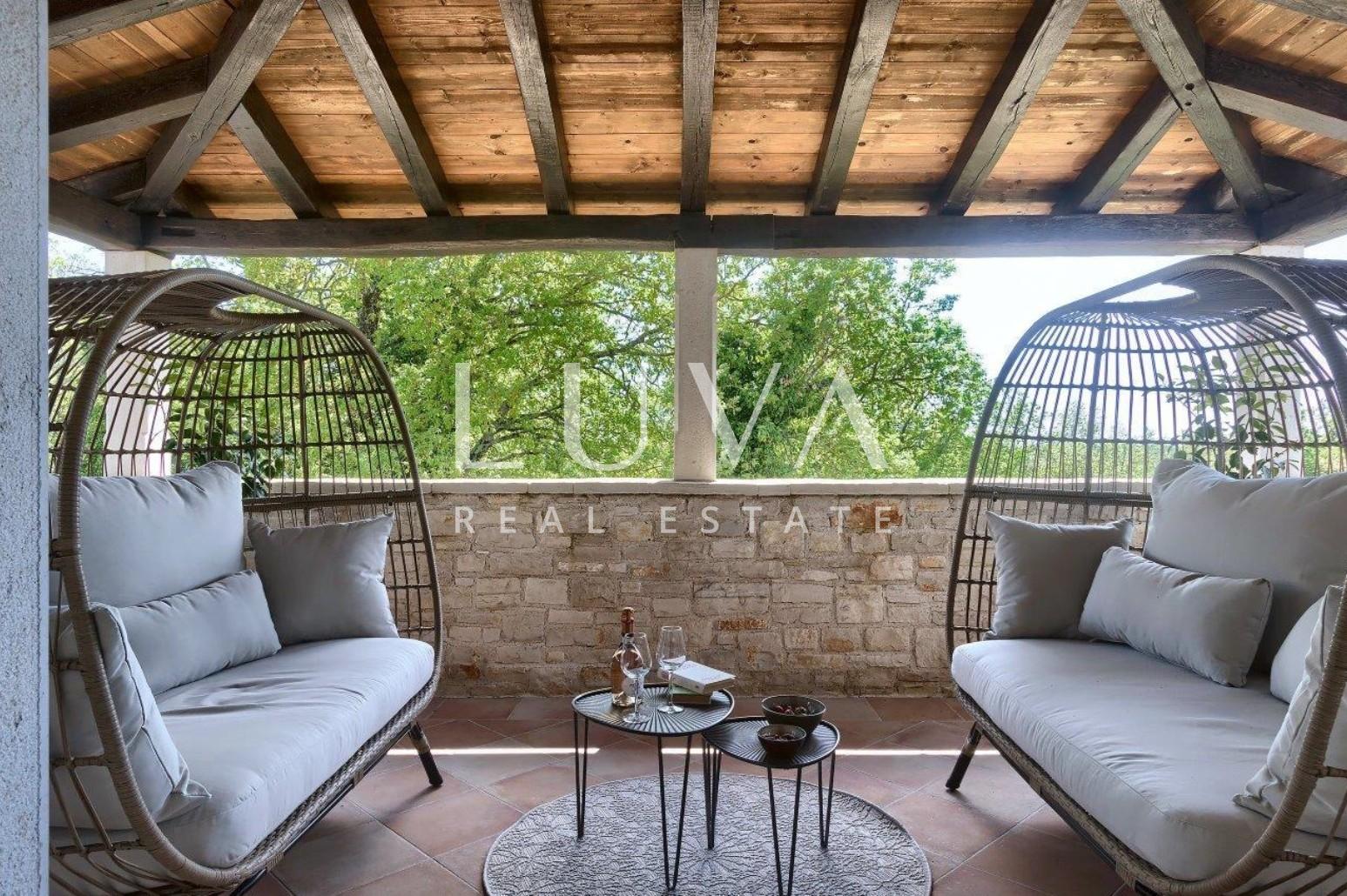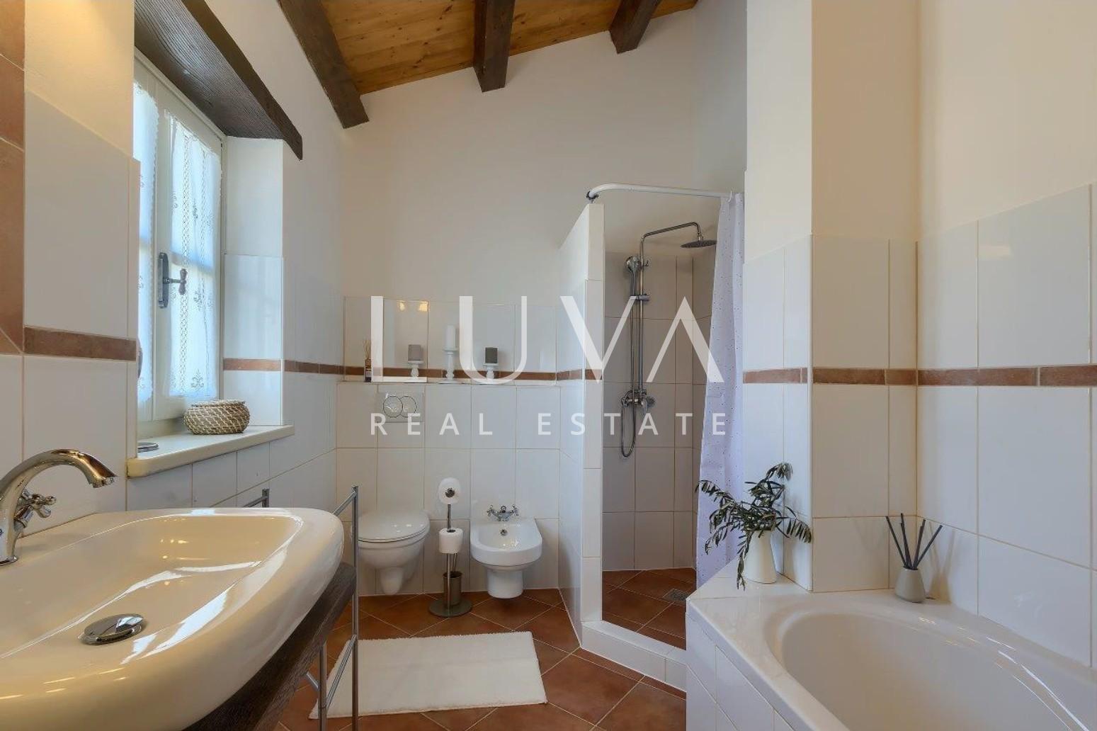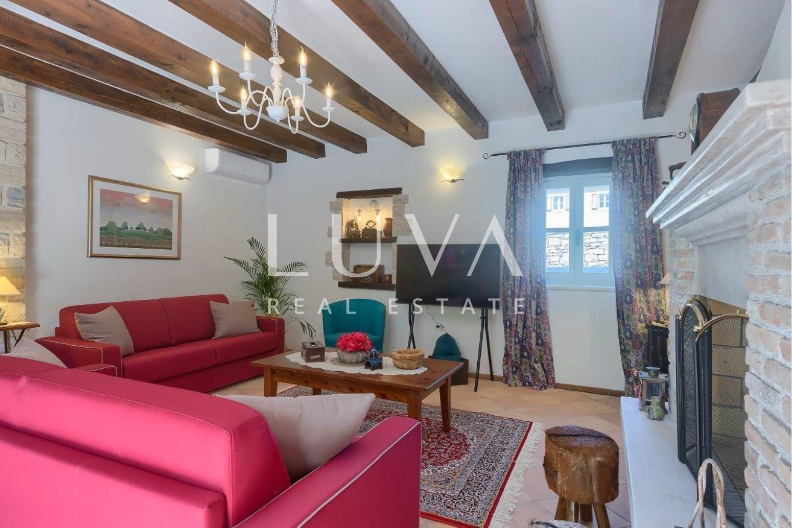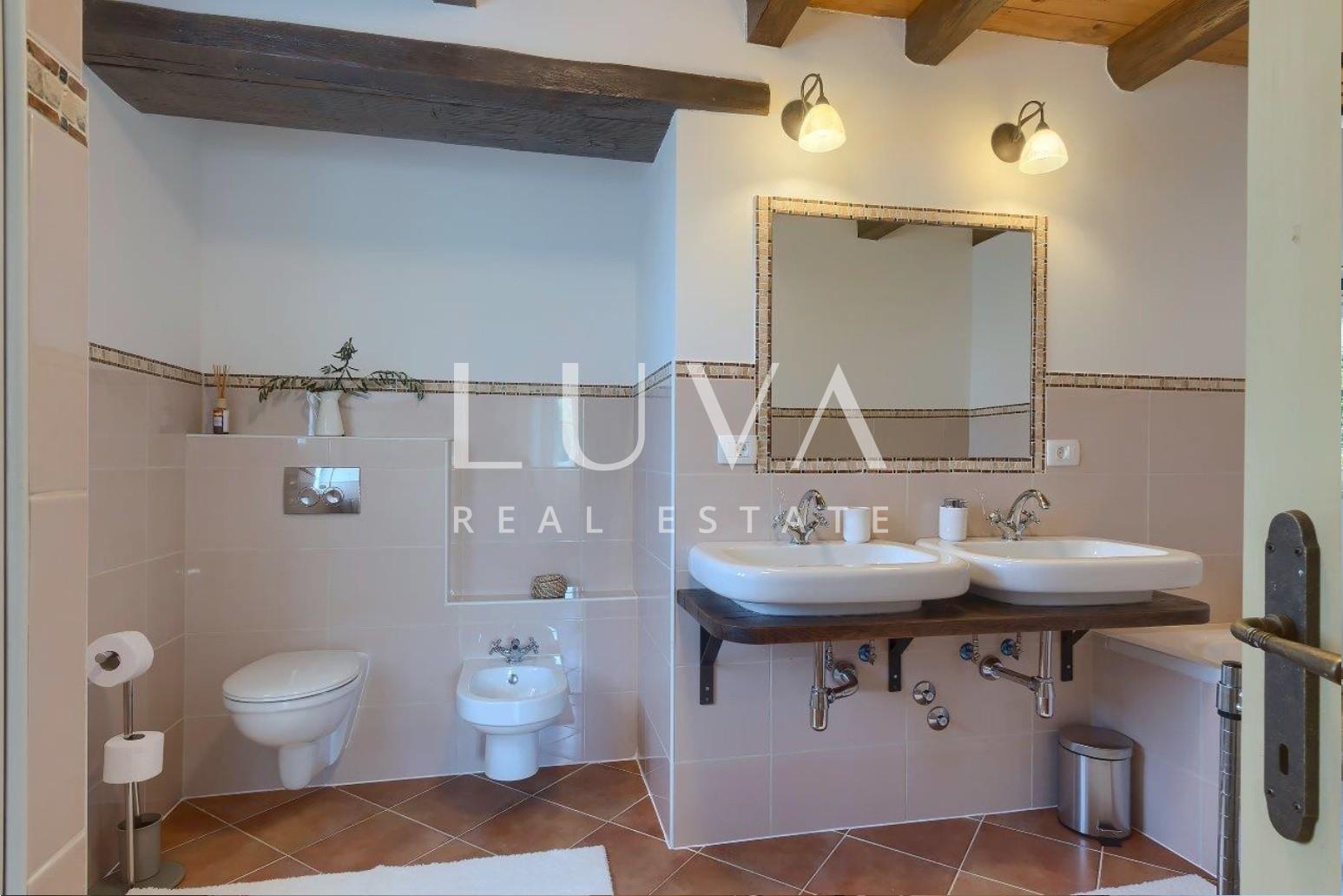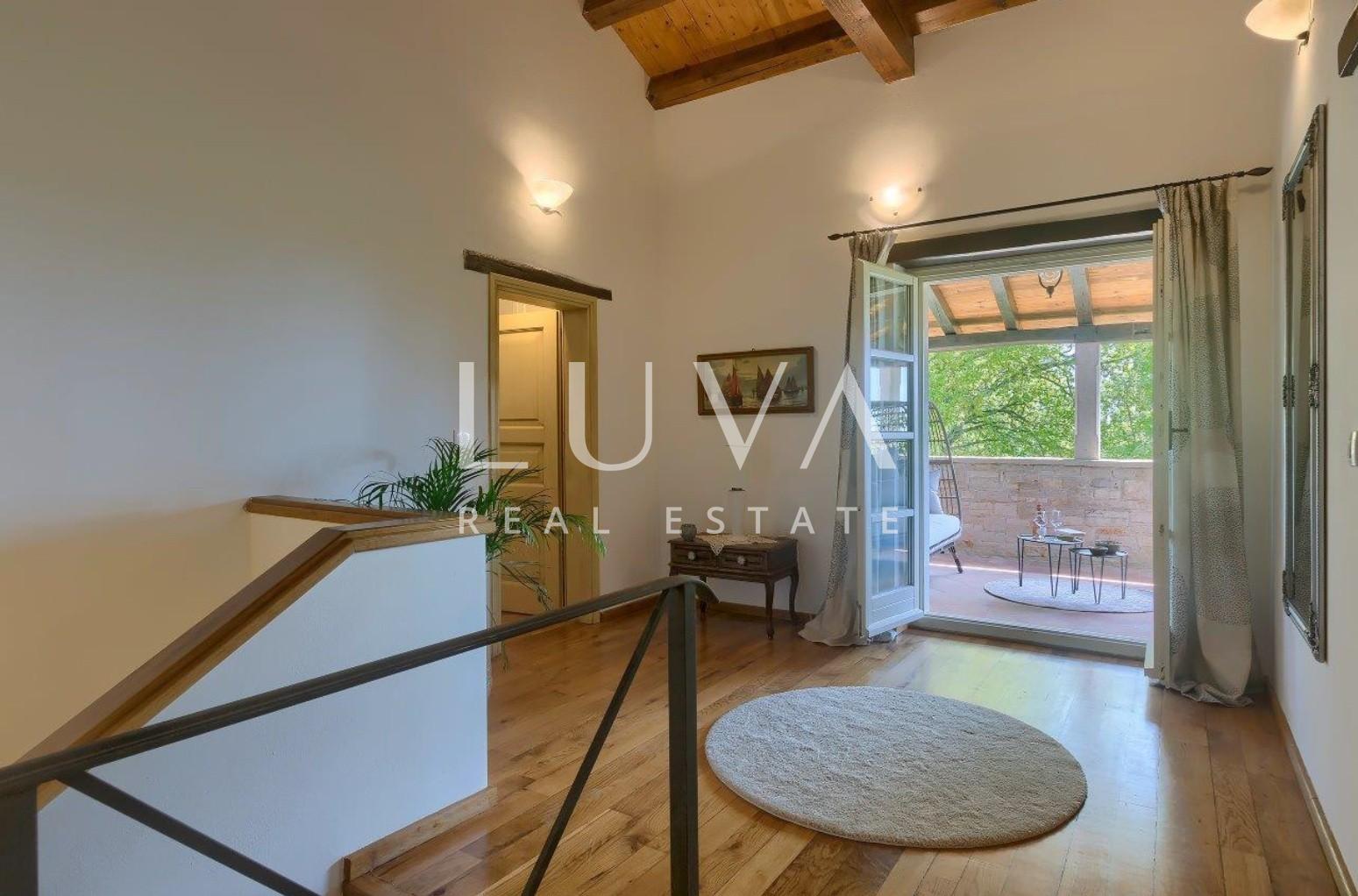 In a quiet location near Tinjan, this refined stone villa with a swimming pool is an example of carefully restored Istrian architecture, blending tradition with modern luxury. The complete renovation in 2021 brought a fresh, contemporary character, while authentic elements such as dry stone walls, wooden beams, and metal shutters were preserved. Notably, underfloor heating was added on the ground floor, particularly valuable for stone buildings as it provides a healthy indoor climate and comfortable living year-round. The villa is 4-star rated, equipped to accommodate eight guests, but due to its high standards, it could easily qualify as 5-star.