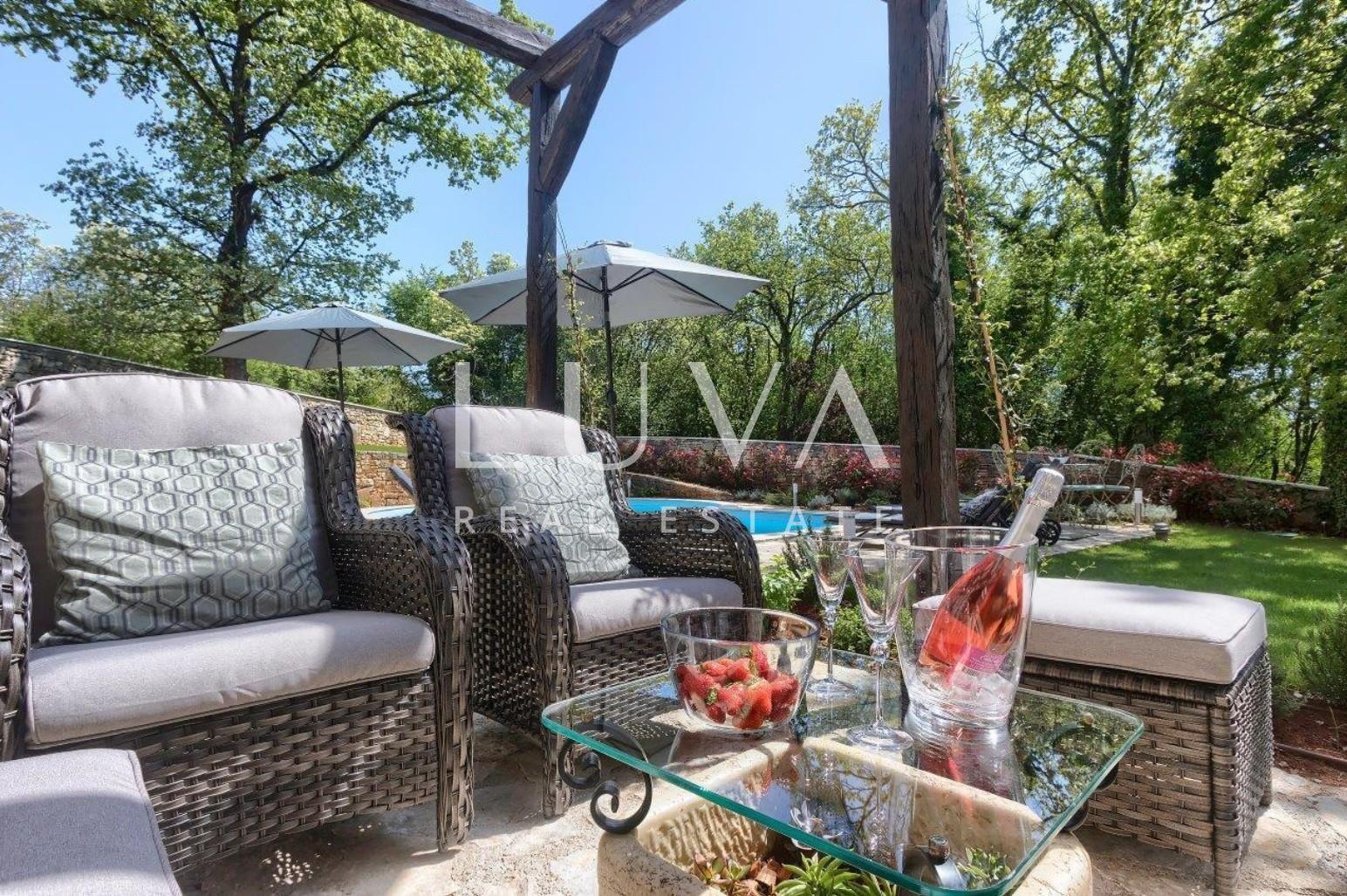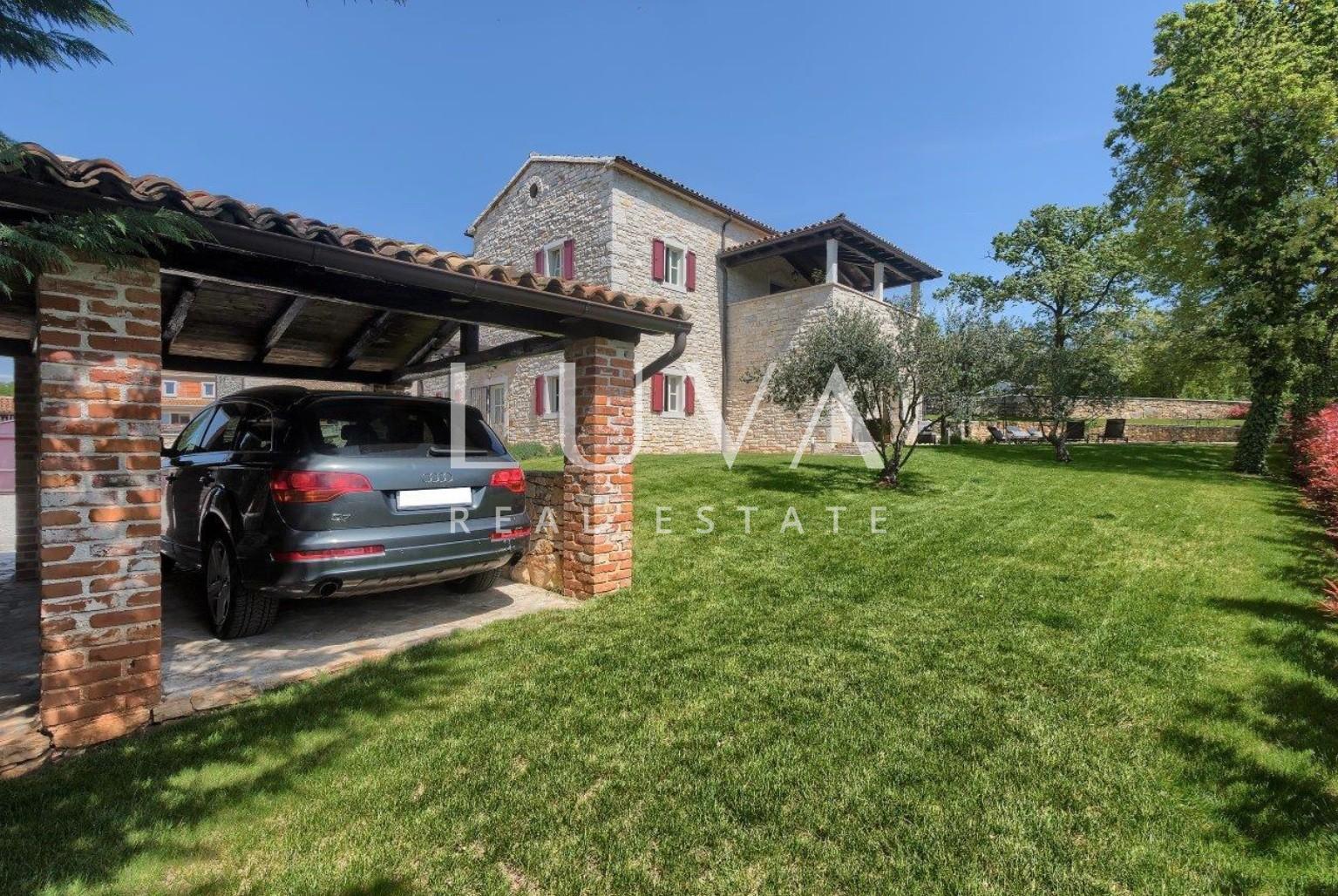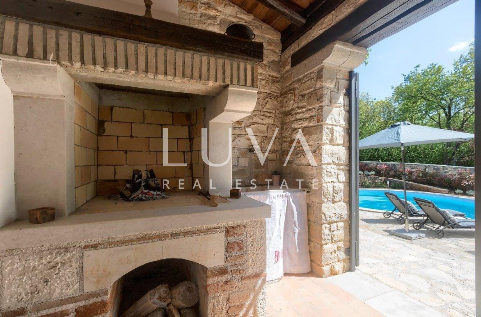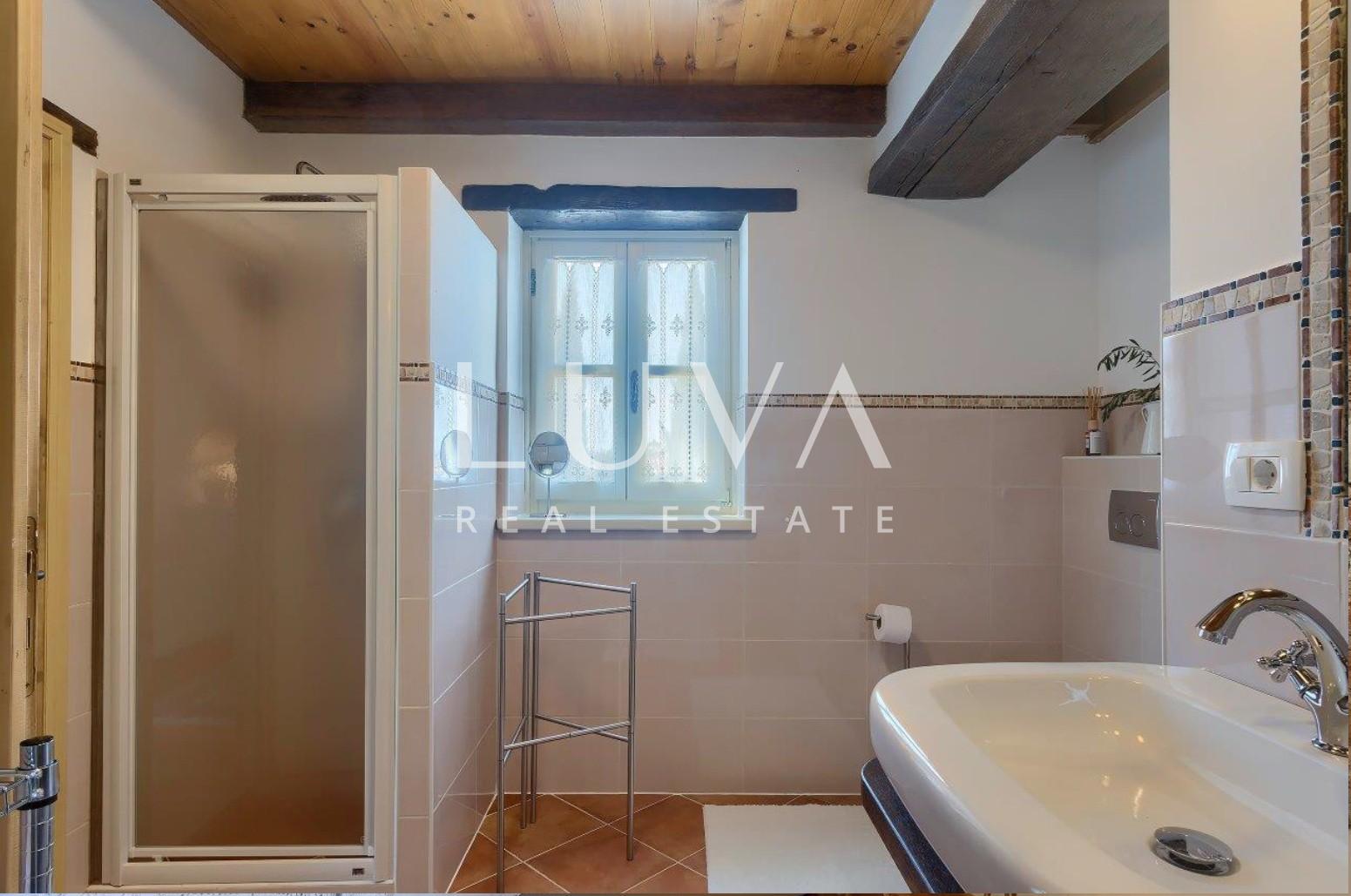 In a quiet location near Tinjan, this refined stone villa with a swimming pool is an example of carefully restored Istrian architecture, blending tradition with modern luxury. The complete renovation in 2021 brought a fresh, contemporary character, while authentic elements such as dry stone walls, wooden beams, and metal shutters were preserved. Notably, underfloor heating was added on the ground floor, particularly valuable for stone buildings as it provides a healthy indoor climate and comfortable living year-round. The villa is 4-star rated, equipped to accommodate eight guests, but due to its high standards, it could easily qualify as 5-star.