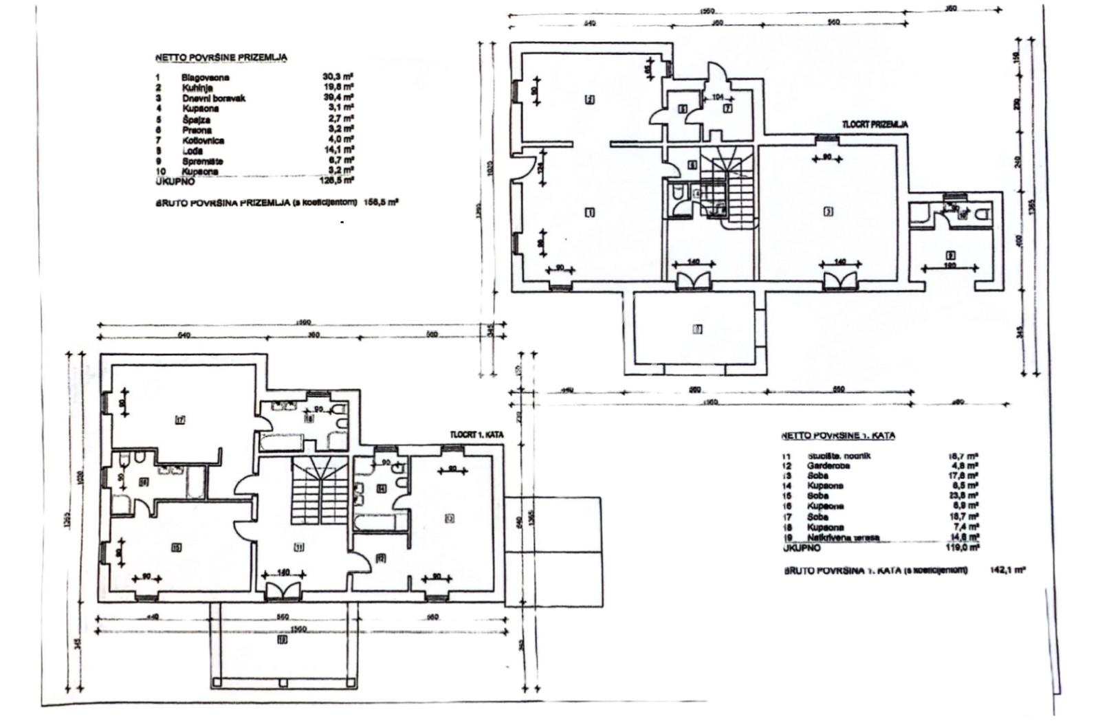 The exterior features a 37 m² swimming pool, prepared for installation of a heating system, making it usable most of the year. The yard also includes a covered fireplace, an outdoor bathroom with a shower, covered parking for two cars with charging points for electric cars or bikes, and additional uncovered space for four more vehicles. The villa has a boiler room with a heat pump and a Bosch central heating and hot water system. All bedrooms are air-conditioned with heating and cooling options, while the ground floor has additional underfloor heating and a traditional wood-burning fireplace.