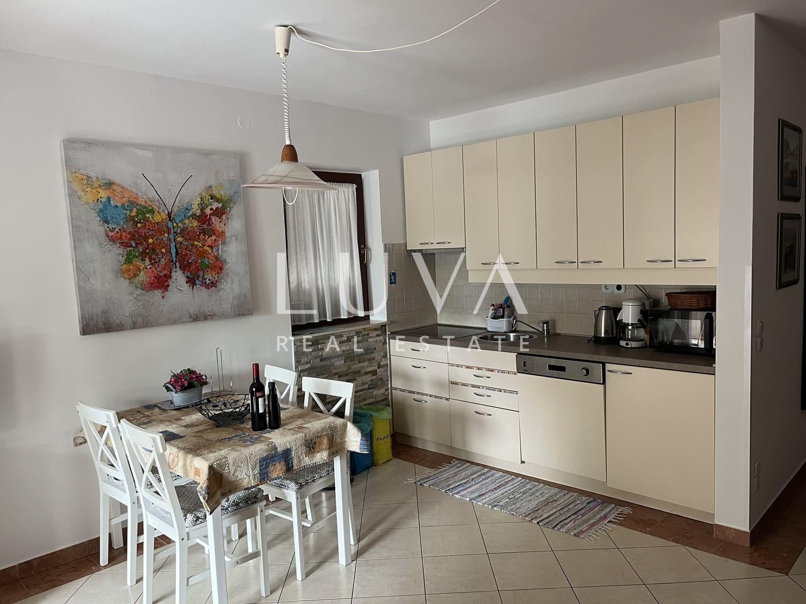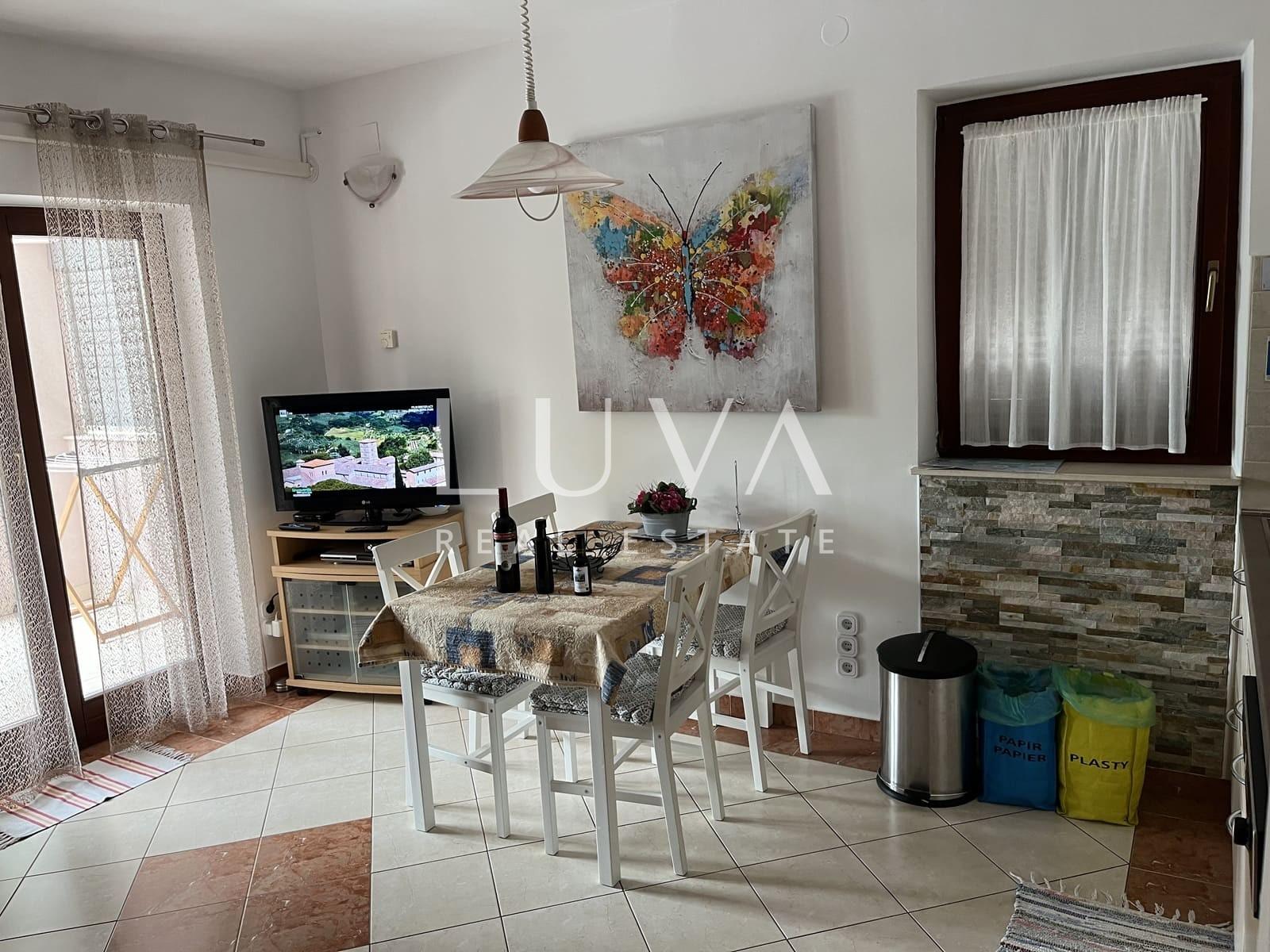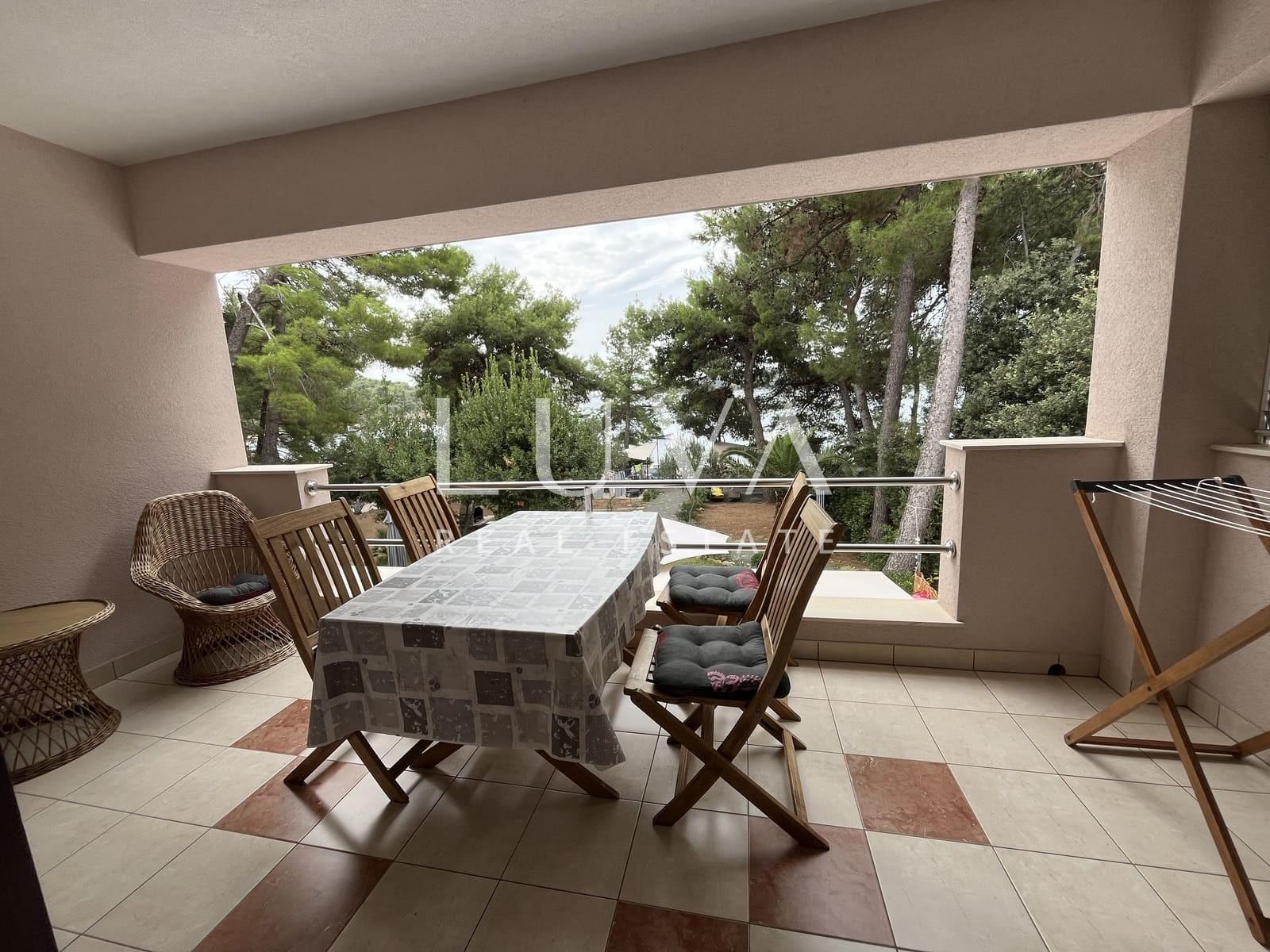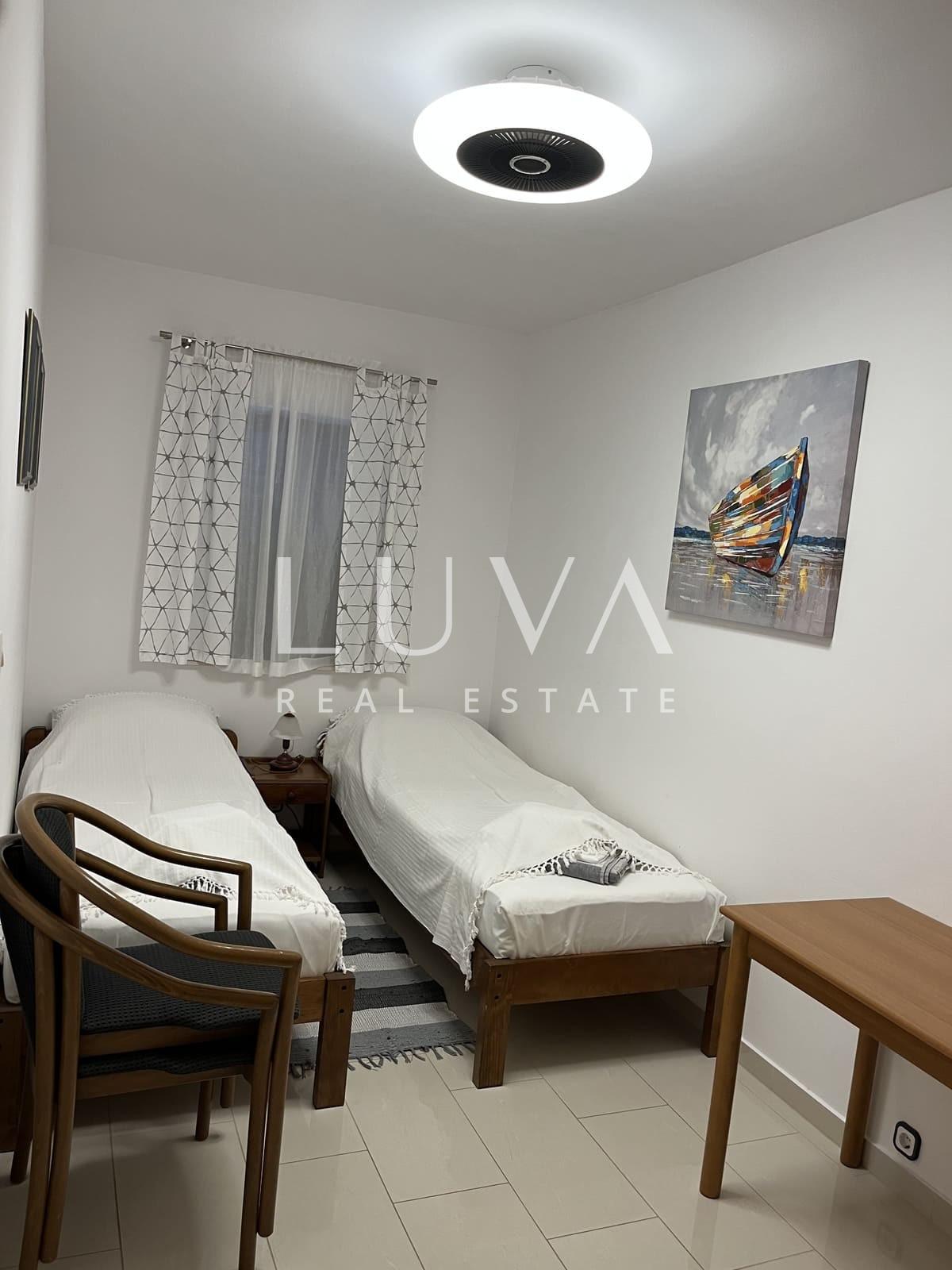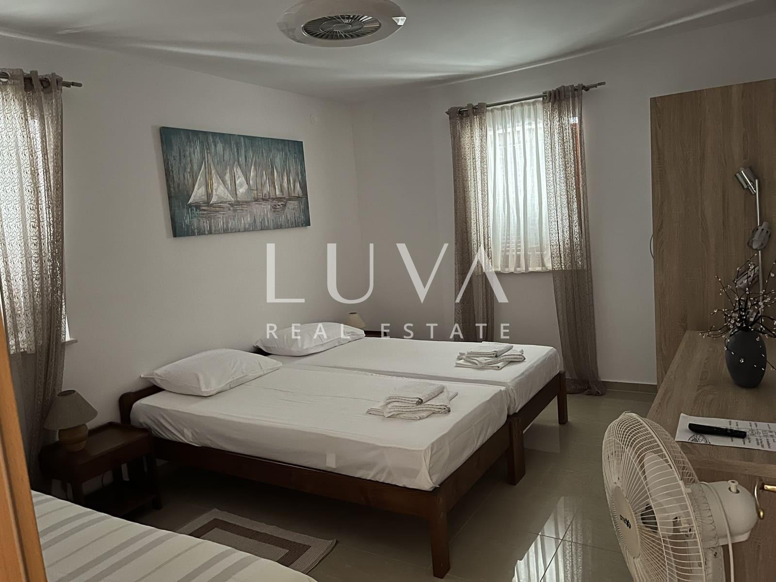 The house was built in 2002 and extends over three levels, basement, ground floor and attic, with a total area of 420 m². It consists of six apartments, two on each level. Four apartments include one bedroom, a bathroom with toilet, a kitchen with living room and terraces oriented towards the sea. Two larger apartments on the ground floor have two bedrooms, an additional toilet, a bathroom, a kitchen with living room and access to the terrace. On the ground floor there are also two separate owner’s units with a private entrance.