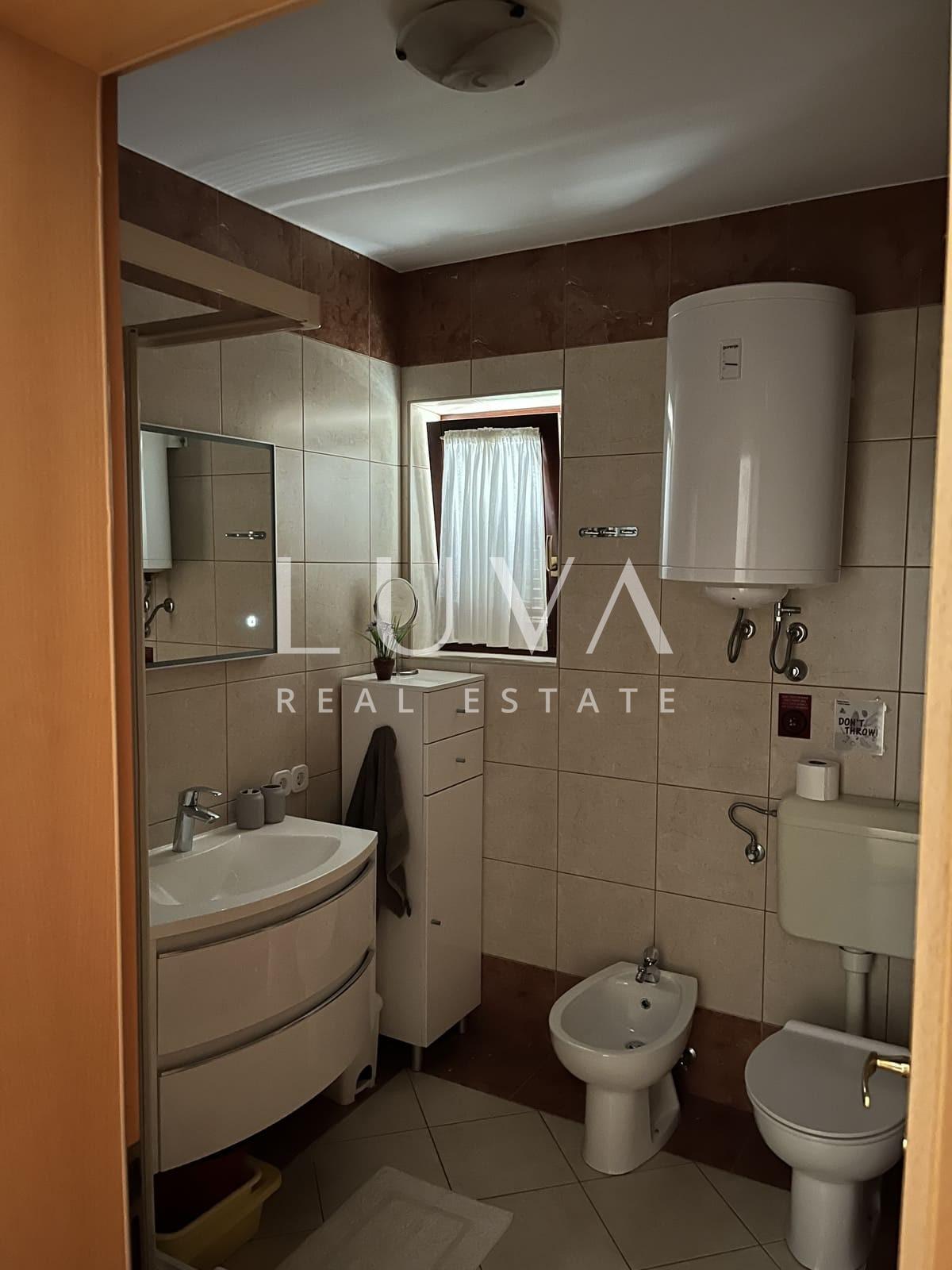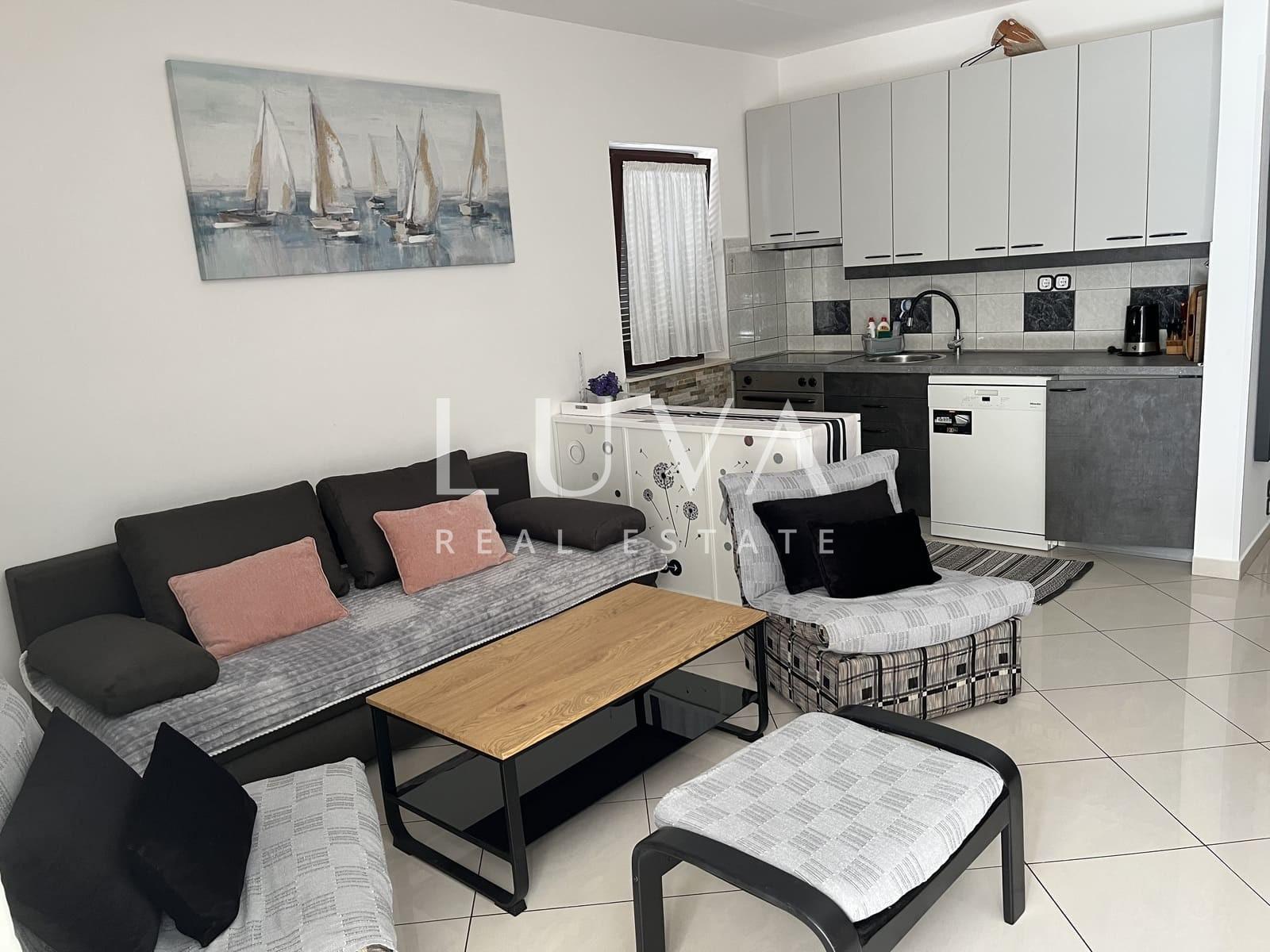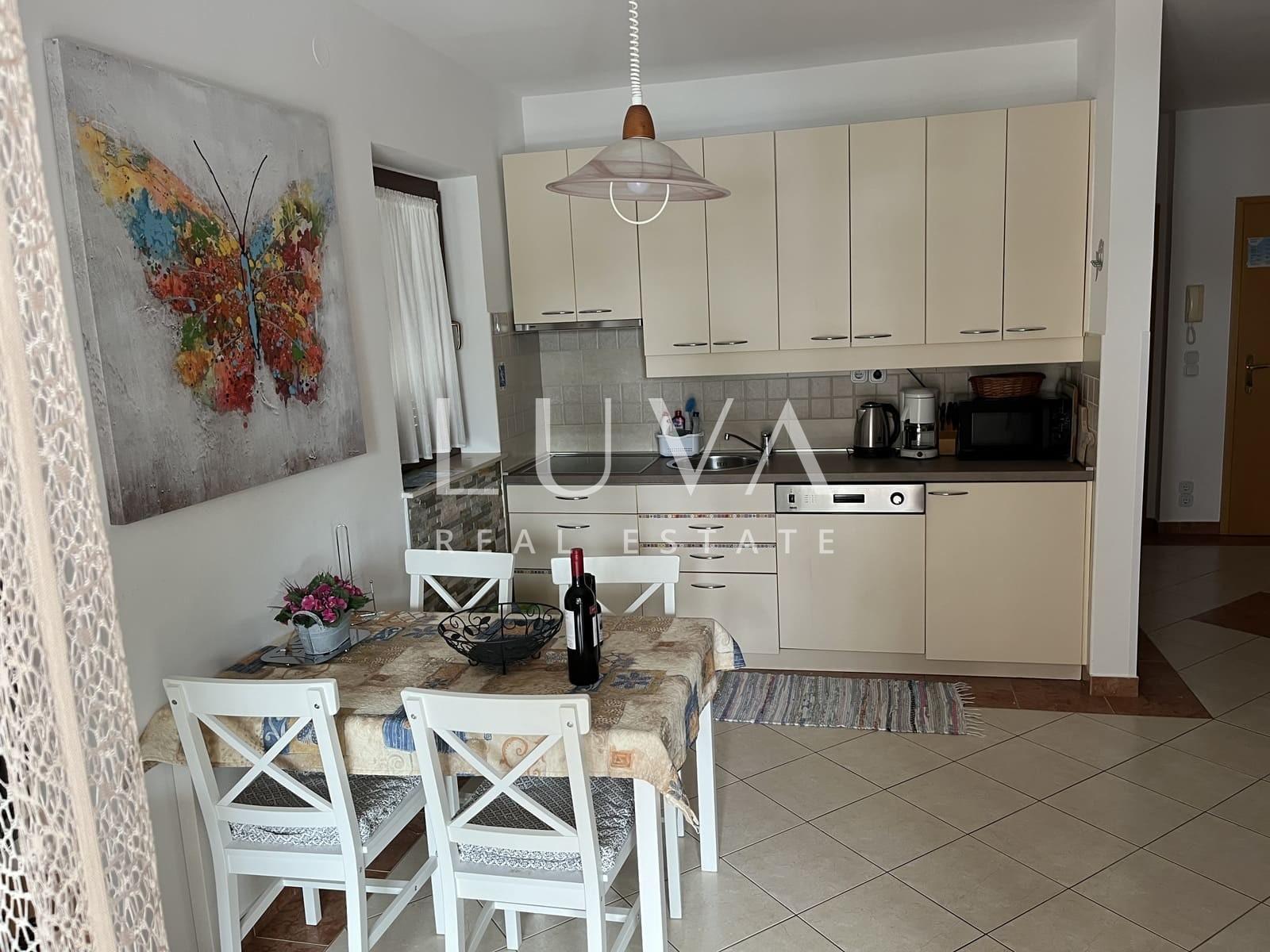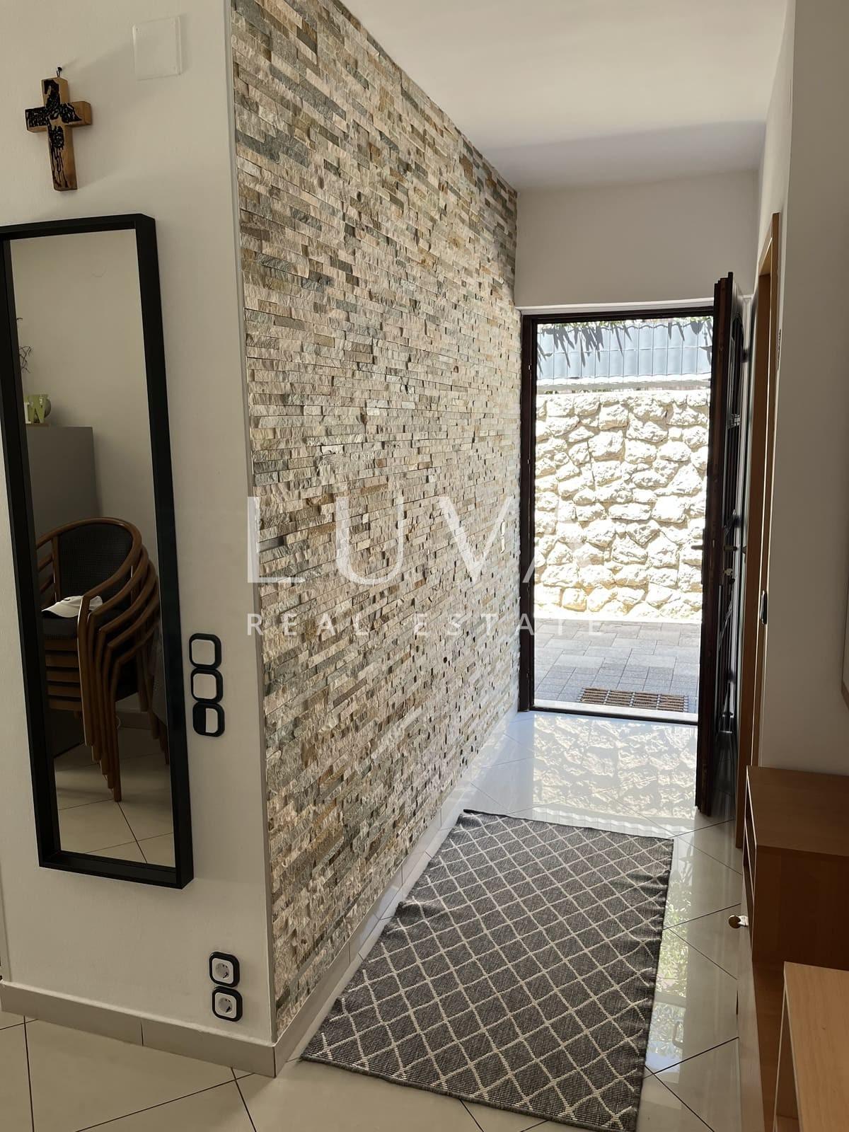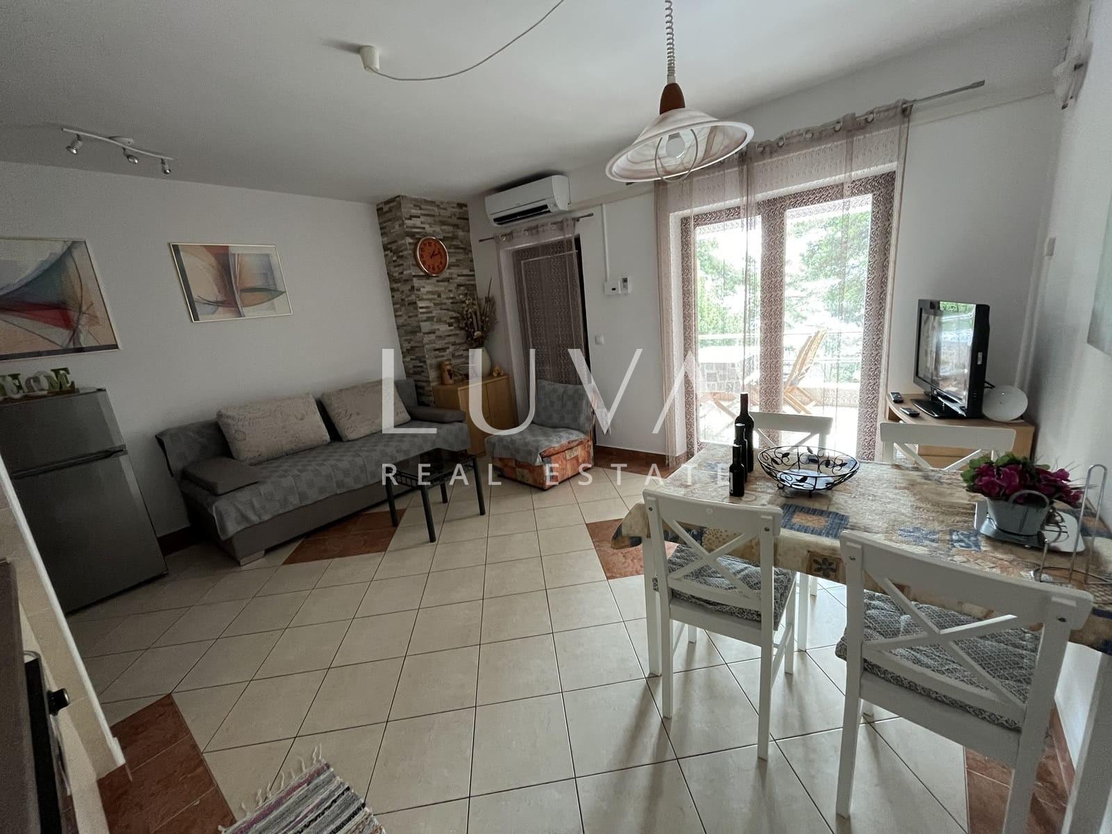 The house was built in 2002 and extends over three levels, basement, ground floor and attic, with a total area of 420 m². It consists of six apartments, two on each level. Four apartments include one bedroom, a bathroom with toilet, a kitchen with living room and terraces oriented towards the sea. Two larger apartments on the ground floor have two bedrooms, an additional toilet, a bathroom, a kitchen with living room and access to the terrace. On the ground floor there are also two separate owner’s units with a private entrance.