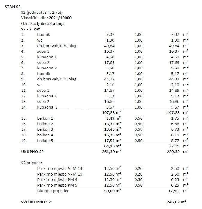 The apartment includes two garage parking spaces – PM4 with an area of 12.50 m² and PM5 with an area of 12.50 m² – as well as two outdoor parking spaces, VPM14 and VPM15, each measuring 12.50 m².
