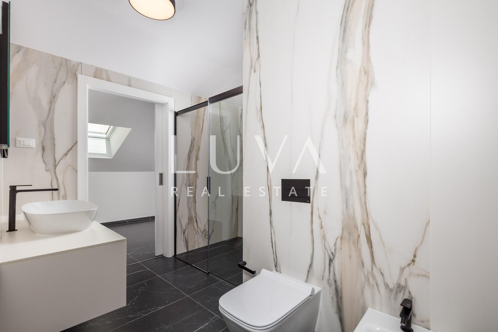 The penthouse features a large terrace and two balconies in the attic with a total area of 84.95 m², offering spectacular views of the sea and the surroundings of Opatija. The rooftop area of 227.23 m² provides complete privacy and a unique space for relaxation, sunbathing, or social gatherings outdoors.