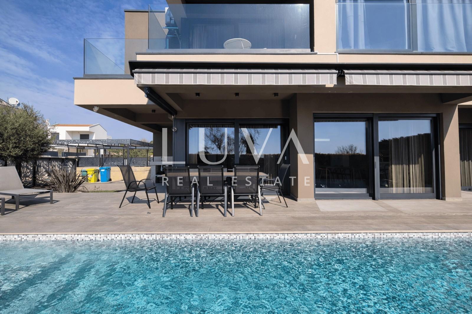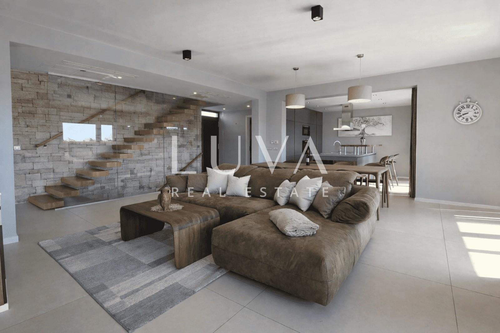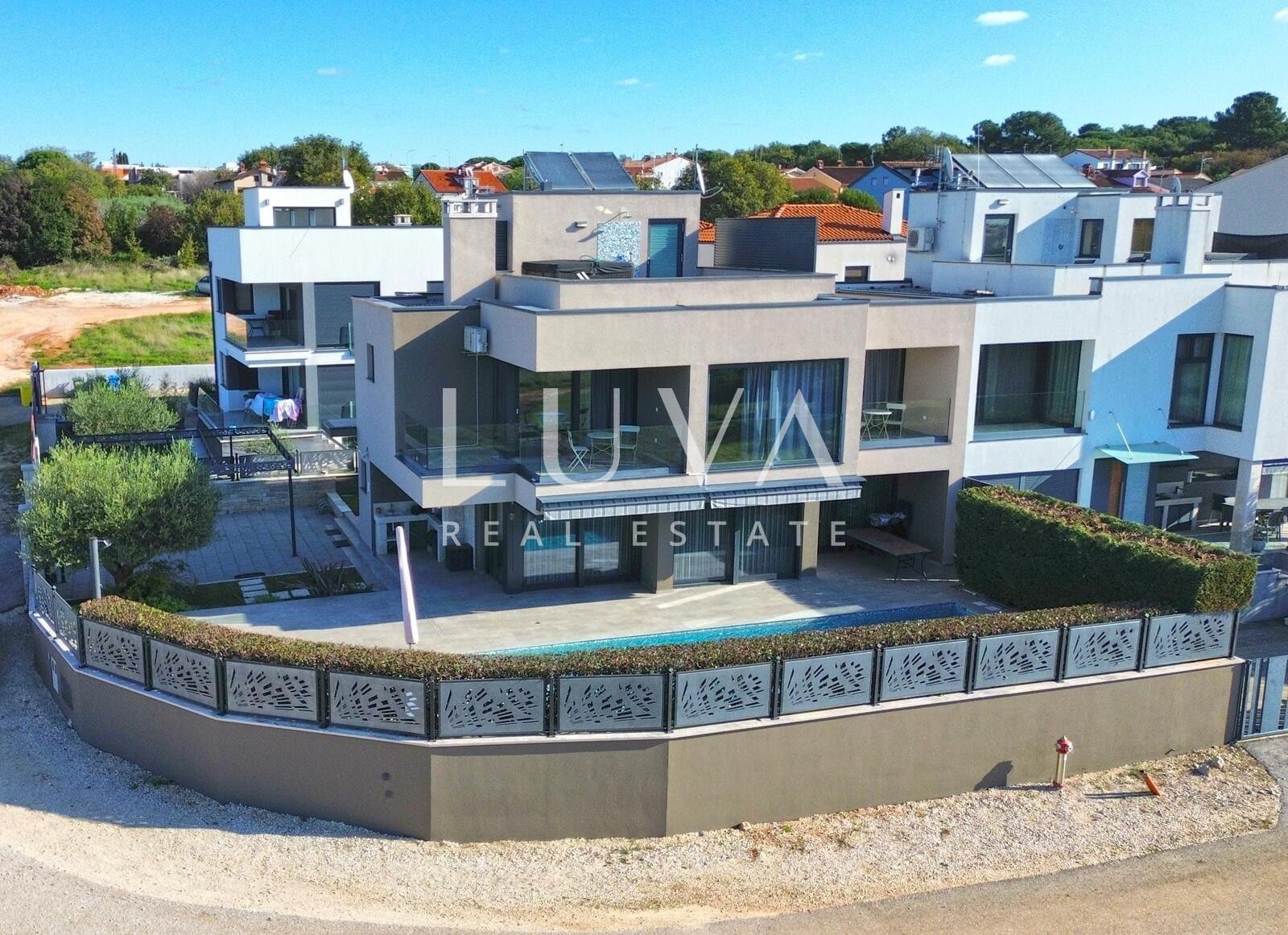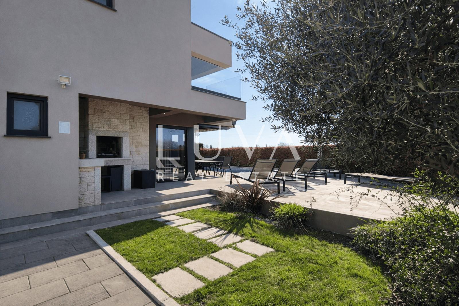 A modern luxury house is for sale in an exceptional location, only 500 meters from beautiful beaches and 1.4 km from the center of Poreč.