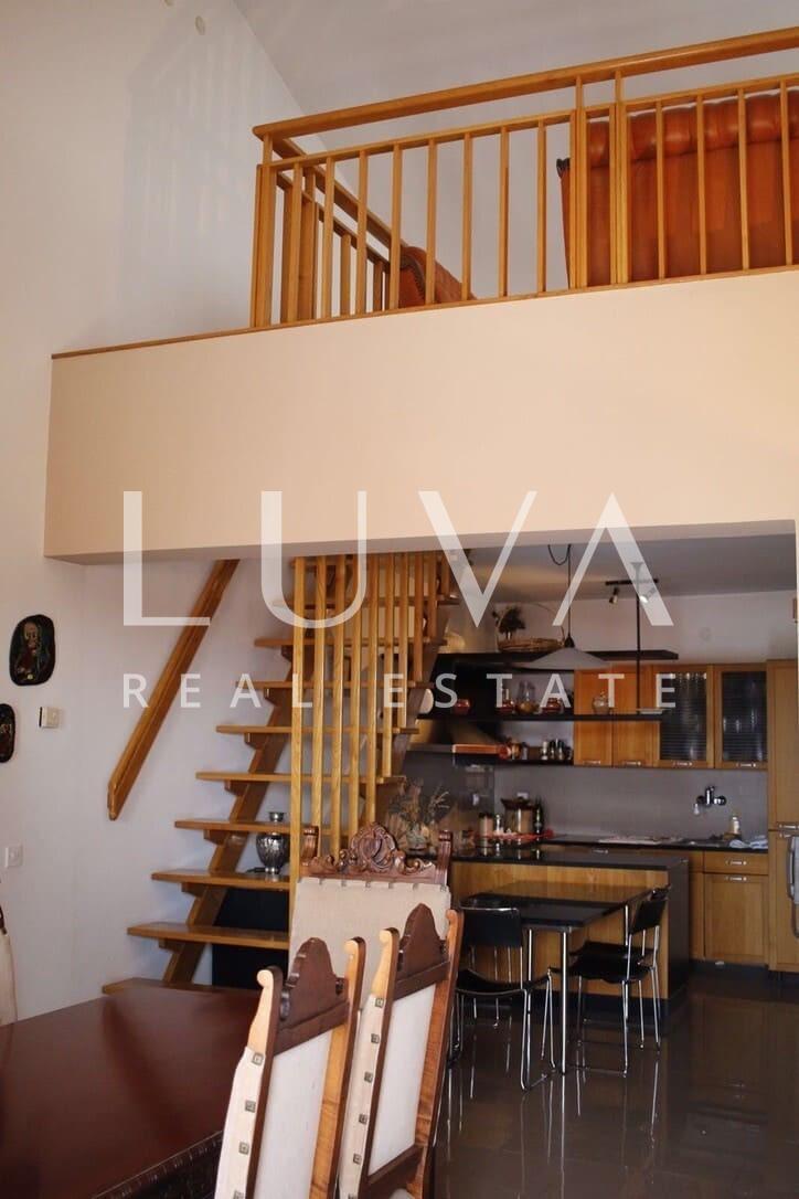 In the very heart of Šibenik, in the attractive Varoš district, a spacious and fully furnished apartment of 100 m² is available for rent, featuring an additional 20 m² rooftop terrace. The apartment is located in a house, spread over two floors, and offers a combination of space and comfort in the vibrant city center, with a beautiful view of the city of Šibenik and the sea.