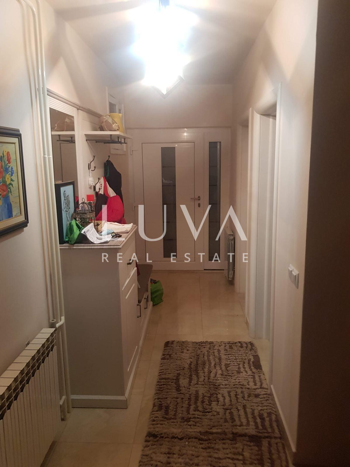 The house is a multi level brick built property constructed of concrete and brick and consists of a basement, ground floor, first floor and attic, all connected by internal stairs. There is the possibility of converting it into two separate residential units by adding external stairs. The basement of 80 m² includes a large kitchen with the possibility of conversion into an apartment and a garage. The ground floor of 100 m² features a living room with dining area and kitchen, a bathroom with toilet, a storage room and a business space currently used by the owner for an accounting office. The first floor of 100 m² comprises four bedrooms and an additional bathroom with toilet. The attic, with a floor area of 100 m², can be converted into additional living space with minor investment. The roof is new and boarded, and access is provided by a finished staircase.