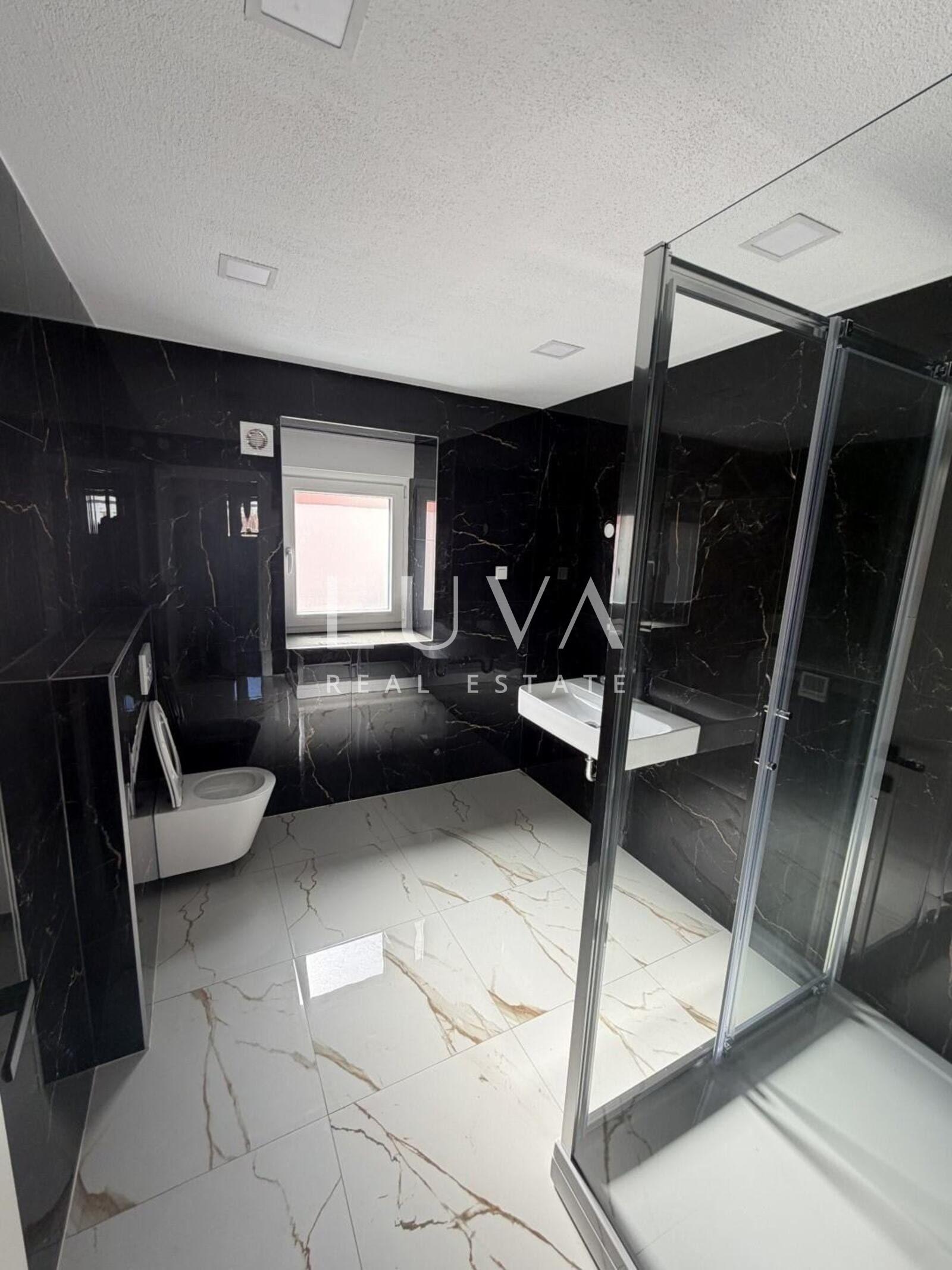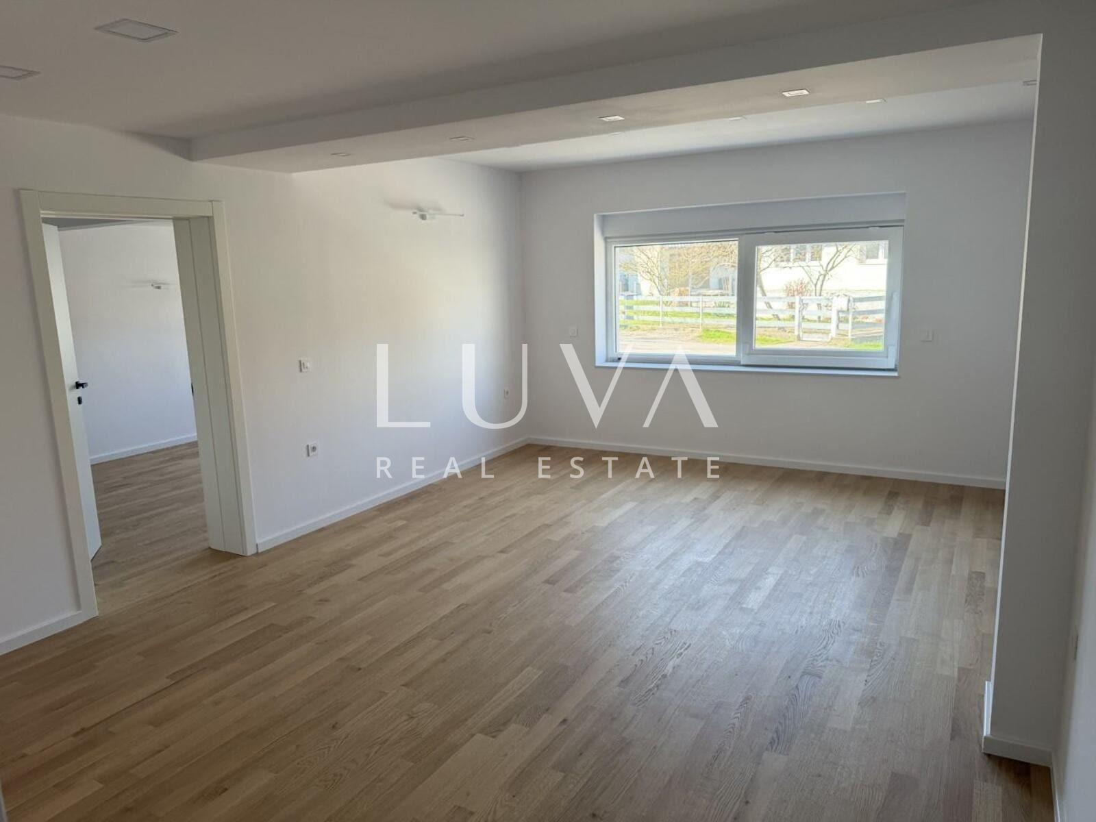 A modern four bedroom apartment in new construction is for sale in the center of Zaprešić, located on the high ground floor of a smaller residential building with a ground floor and two upper floors.