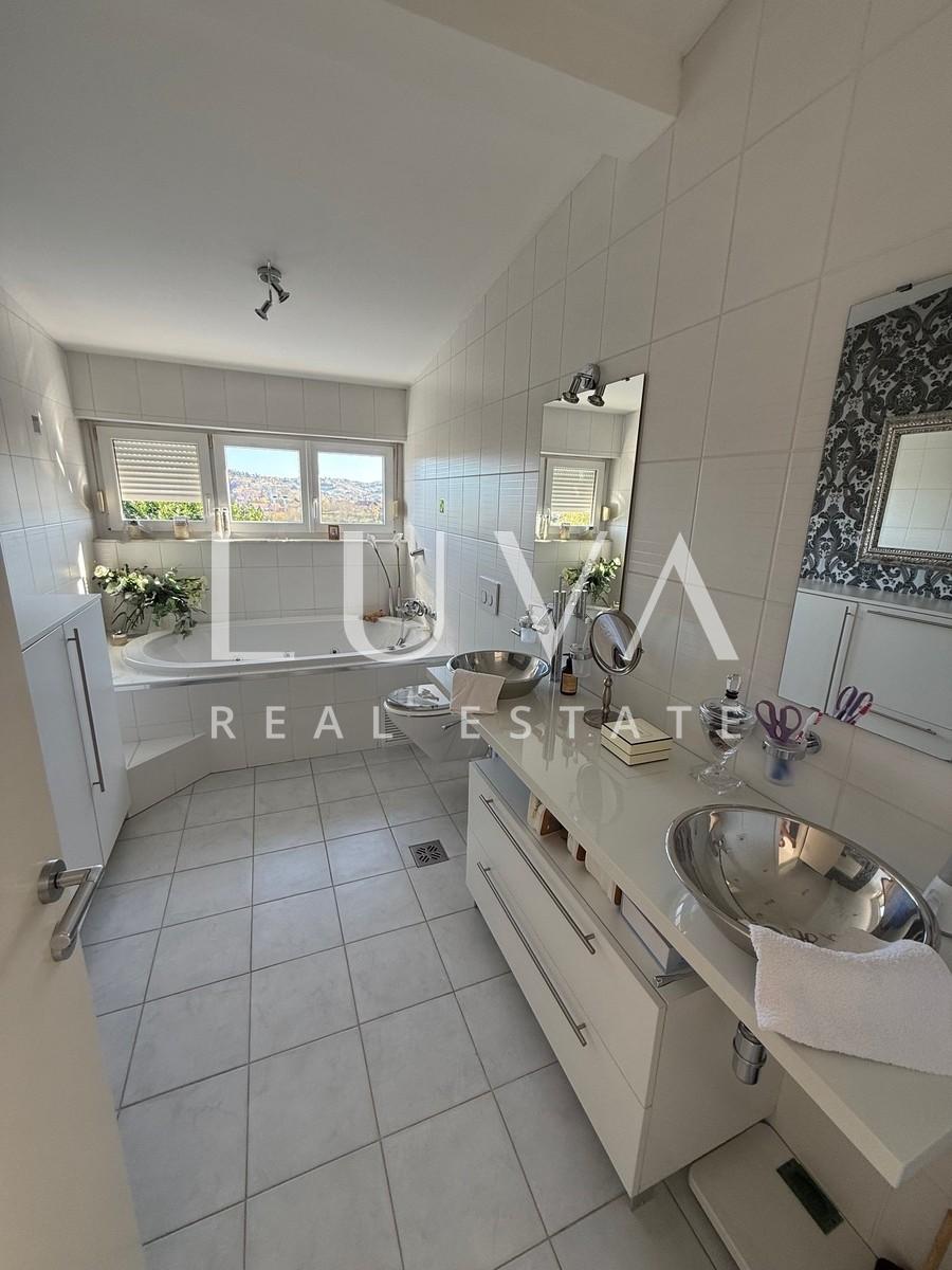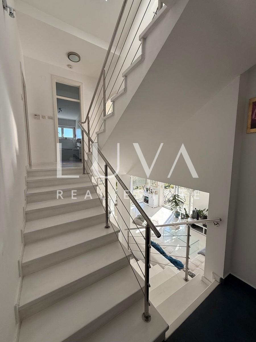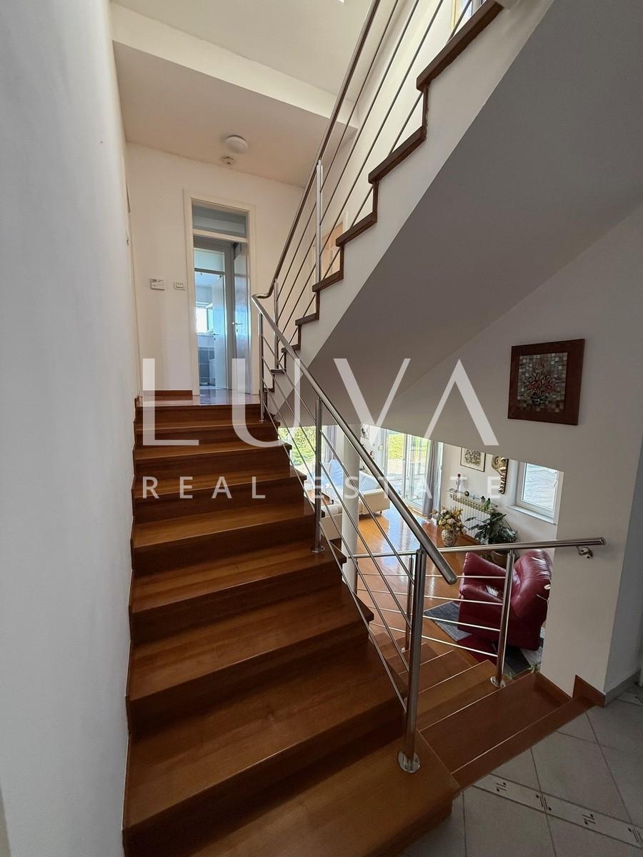 Na polukatu imamo jednu spavaću sobu i kupaonicu, na prvom katu dvije spavaće sobe, te još jednu kupaonicu i walk in garderobu, a u potkrovlju se nalazi dodatna prostrana soba koja može biti radna, spavaća, fitness soba ili po izboru za neku drugu svrhu.
