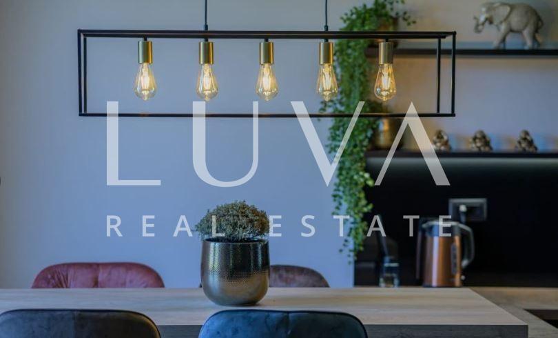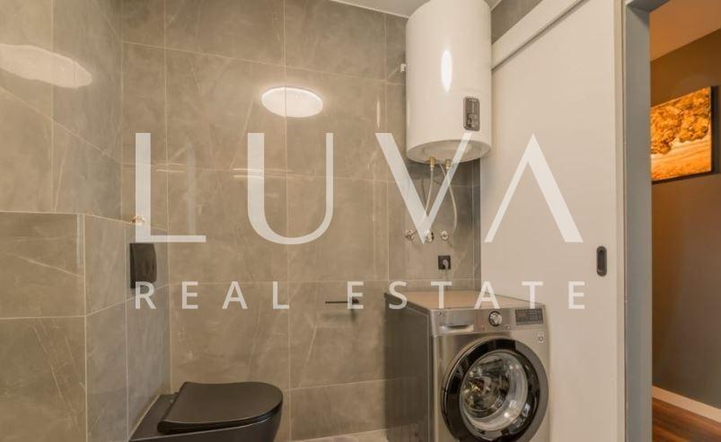 Stan je opremljen modernim aparatima, uključujući perilicu posuđa i ostale praktične elemente, pružajući savršenu kombinaciju luksuza i funkcionalnosti.