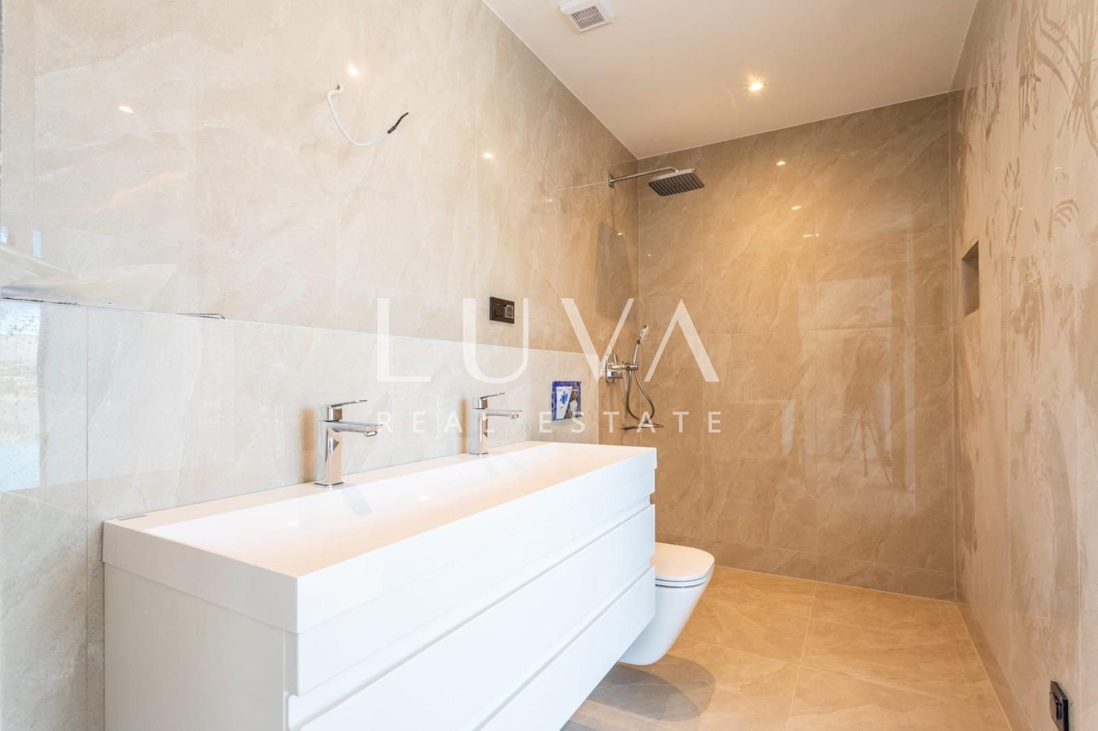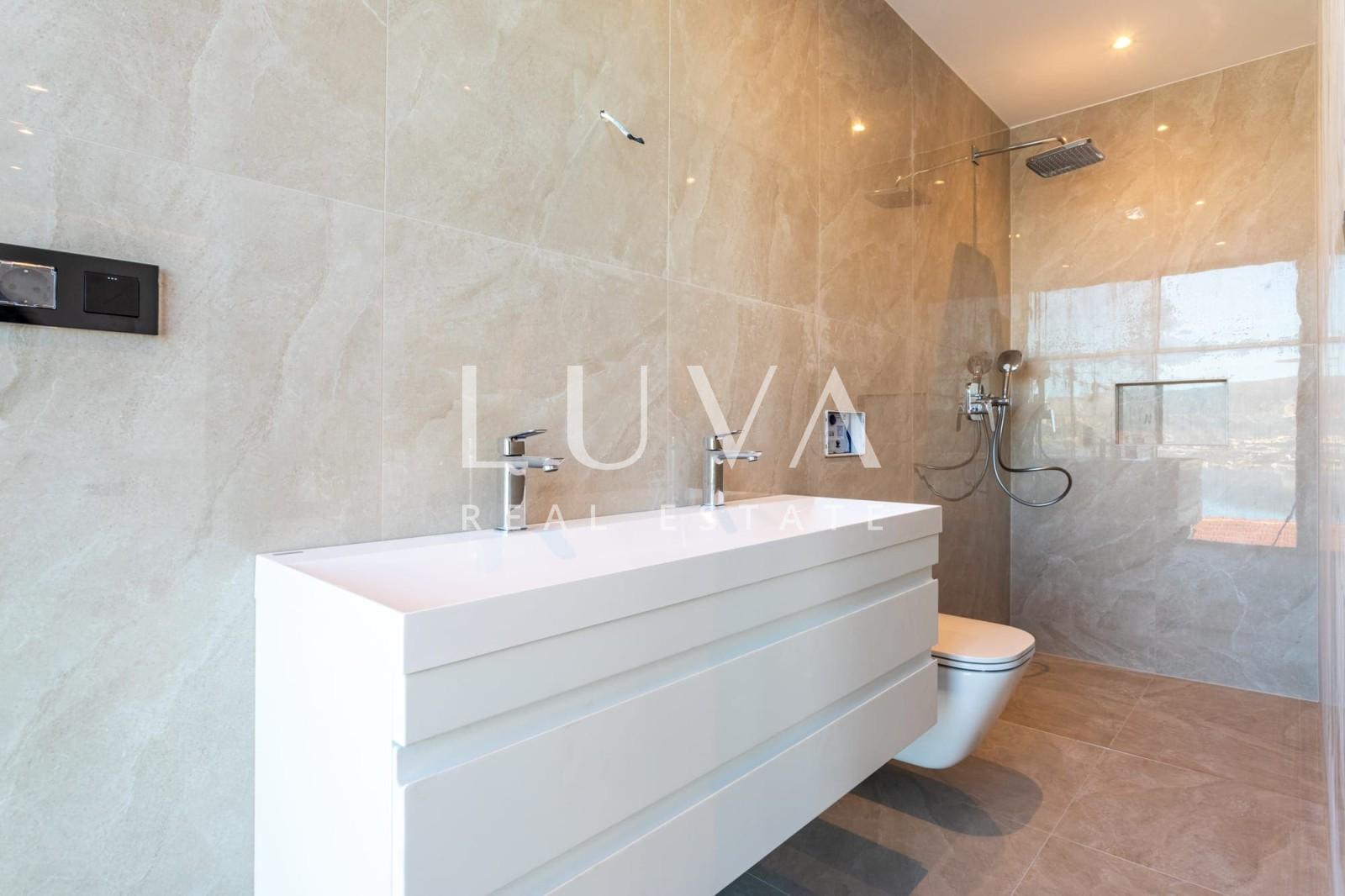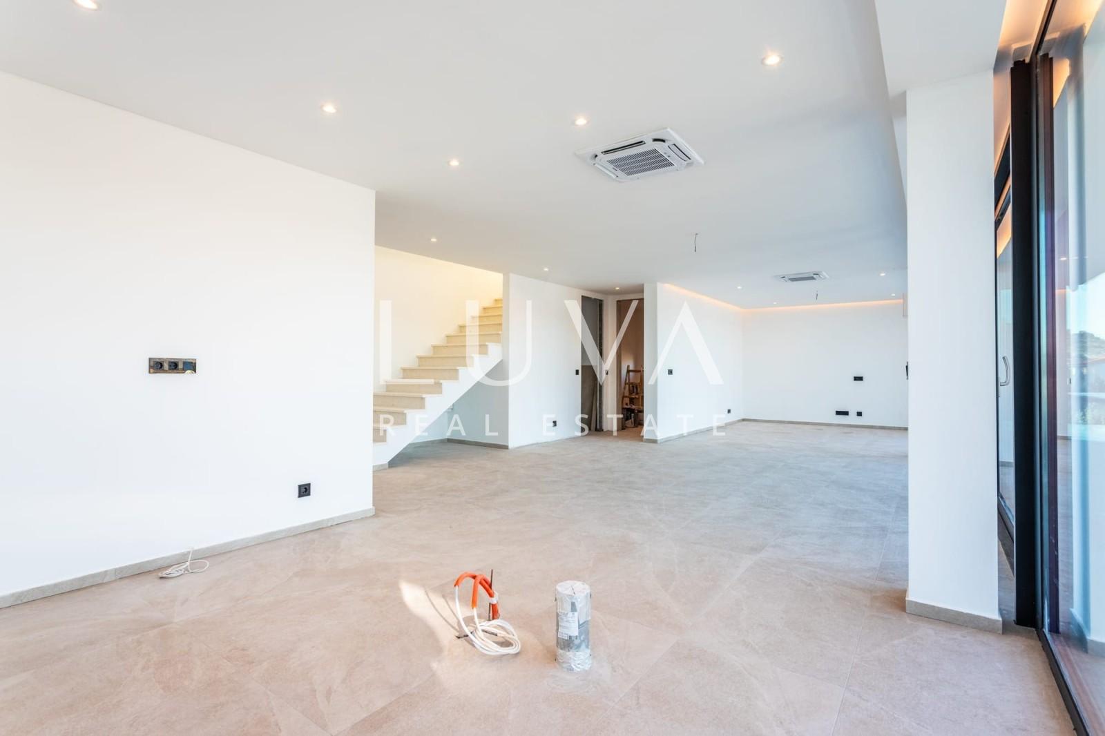 Okućnica vile u potpunosti je uređena i kultivirana, pružajući privatnost i ugodan ambijent za boravak na otvorenom. Nekretnina se prodaje nenamještena, u završnoj fazi uređenja, što budućim vlasnicima omogućuje da interijer oblikuju u skladu s vlastitim stilom i potrebama. Posebnu vrijednost daje blizina mora, udaljenog svega 120 metara, kao i izvrsna prometna povezanost, budući da je zračna luka dostupna u svega nekoliko minuta vožnje. Ova vila predstavlja idealan izbor za luksuzni obiteljski dom ili kao vrhunsku investiciju u turistički najam.