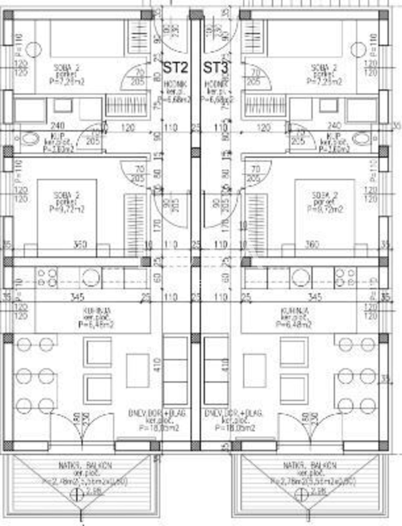 Stan raspolaže prostranim dnevnim boravkom površine 18,05 m², koji zahvaljujući velikim otvorima pruža obilje prirodnog svjetla i pogled prema moru. Dnevni prostor povezan je s natkrivenim balkonom od 6 m², idealnim za opuštanje i uživanje u mediteranskoj atmosferi tijekom cijele godine.