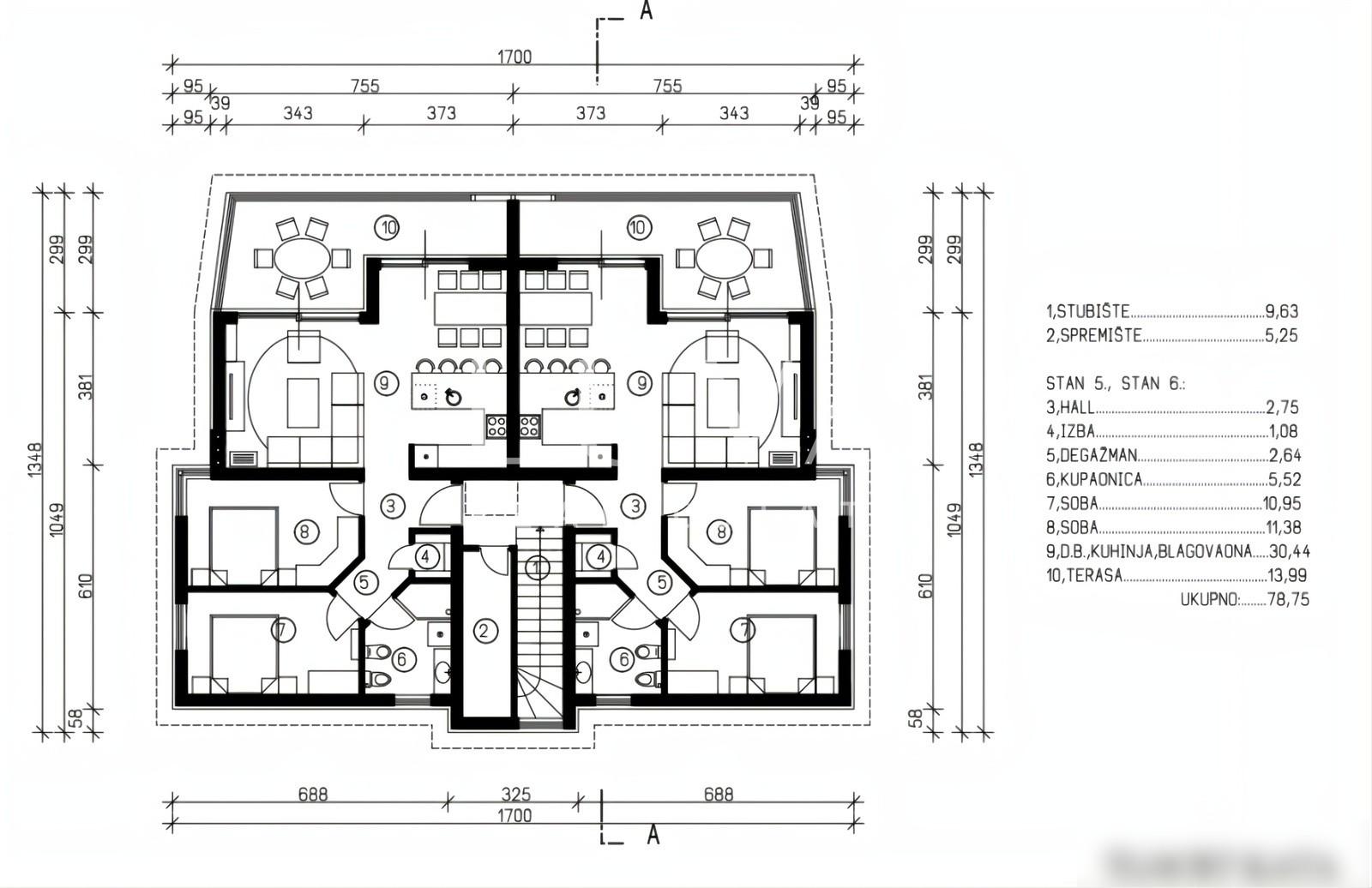 Stan ima ukupnu površinu 78,75 m2, sastoji se od: