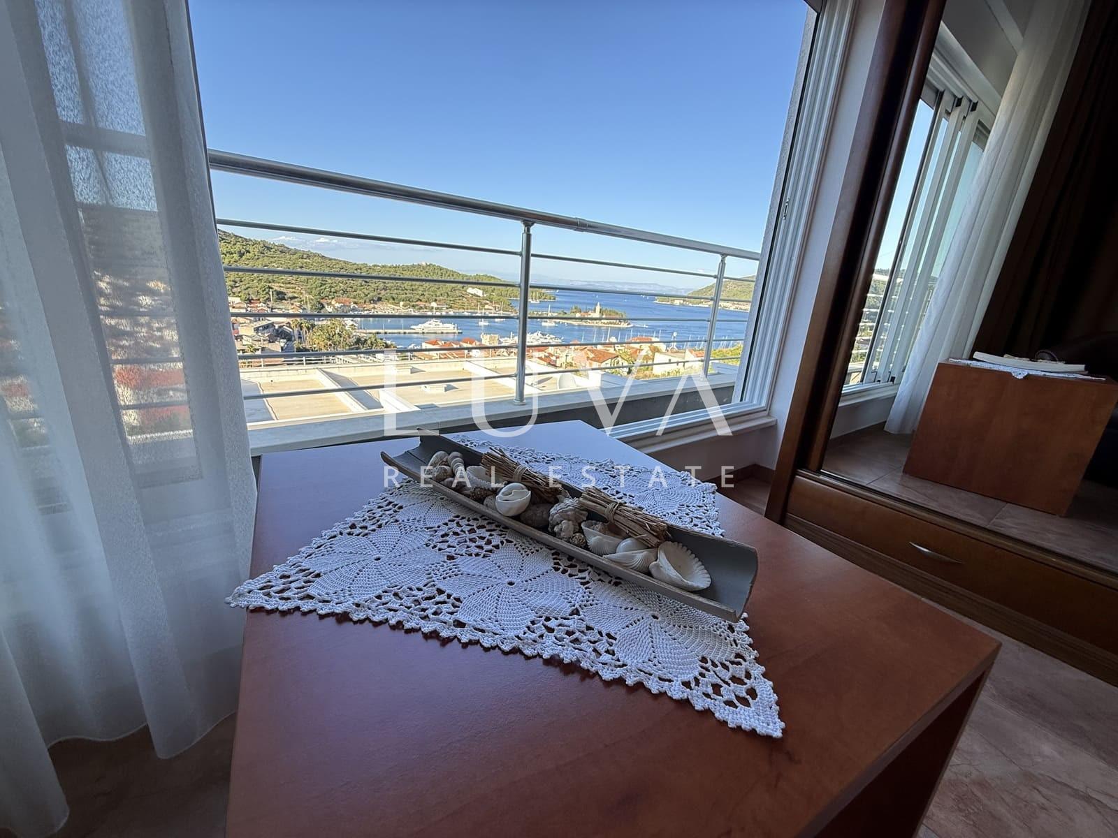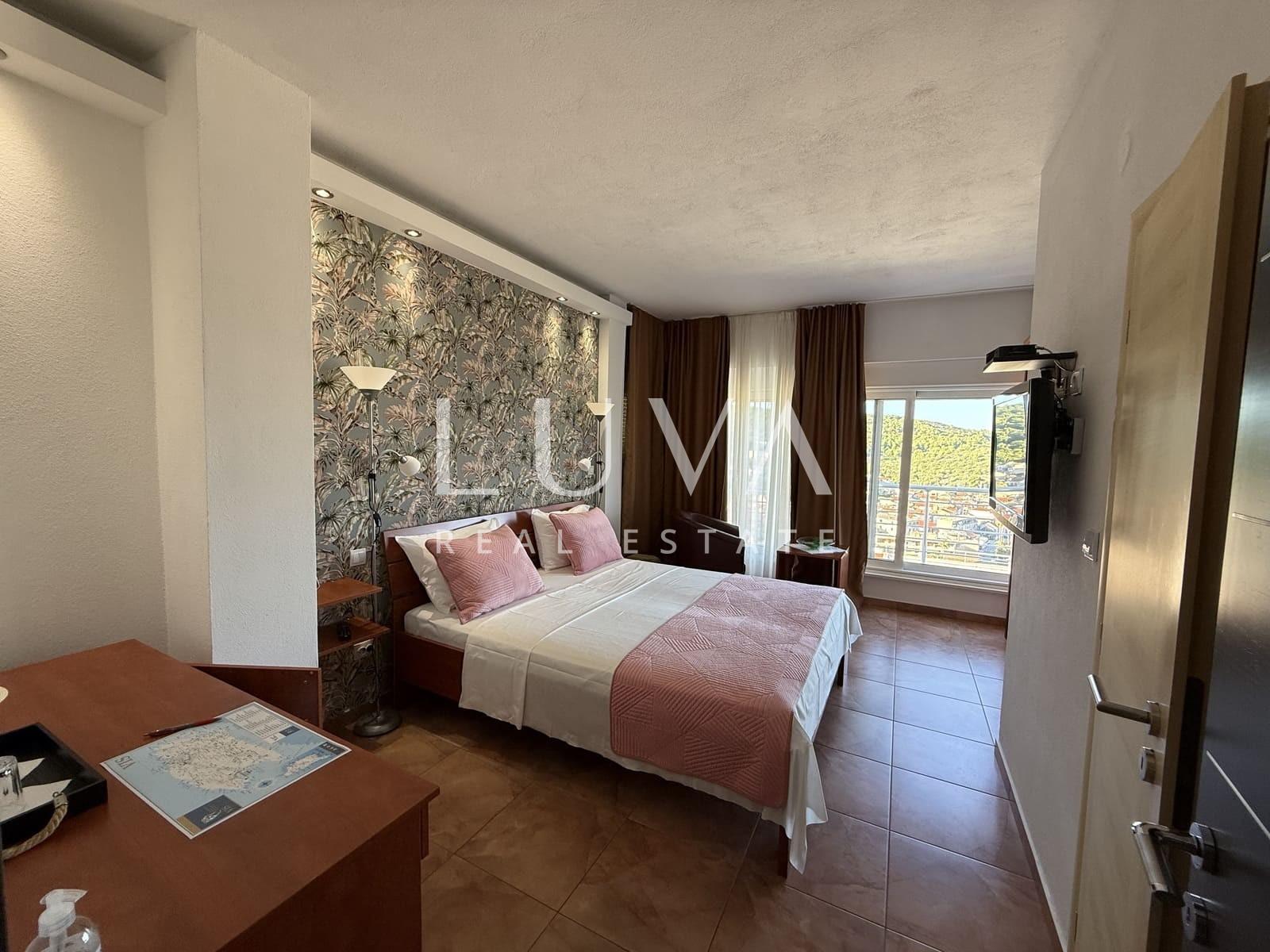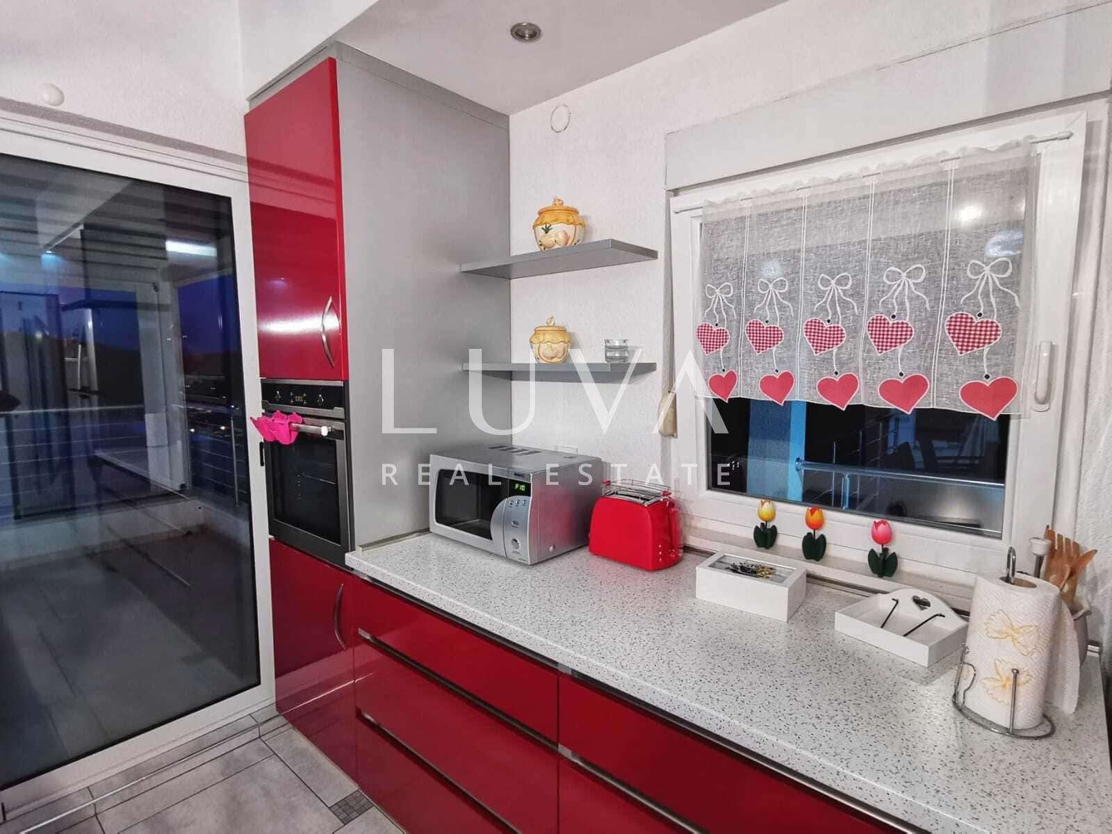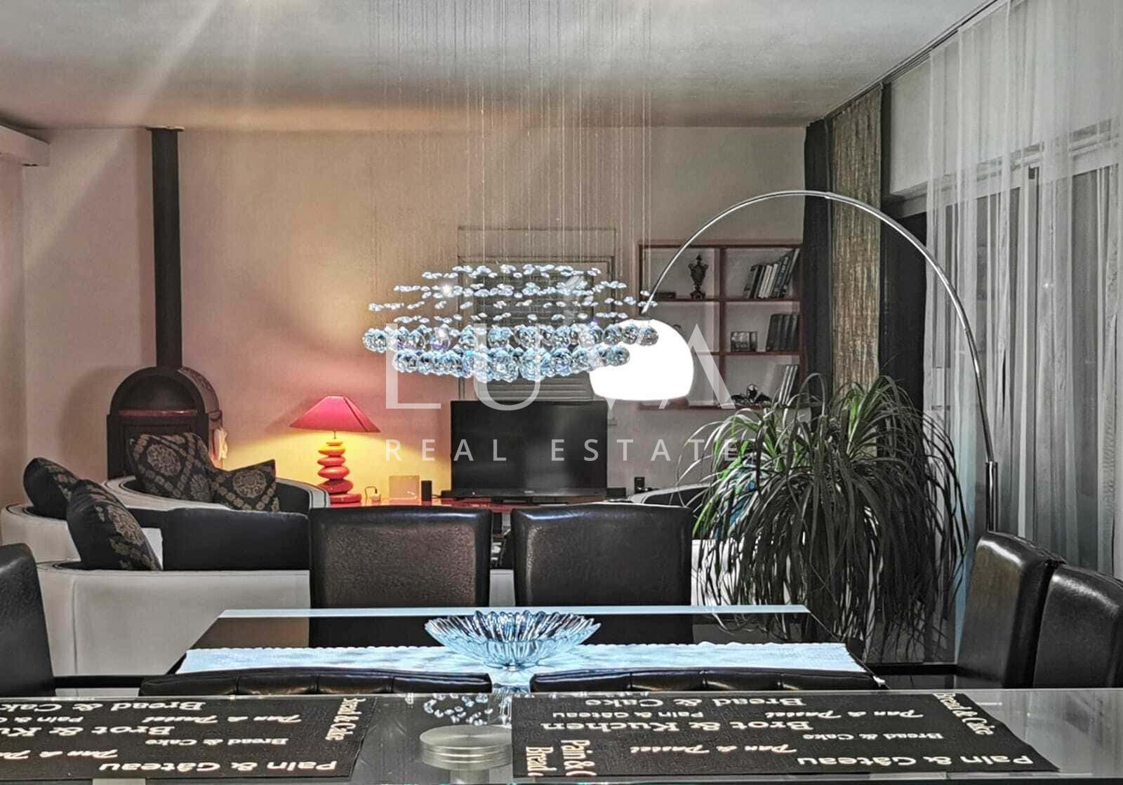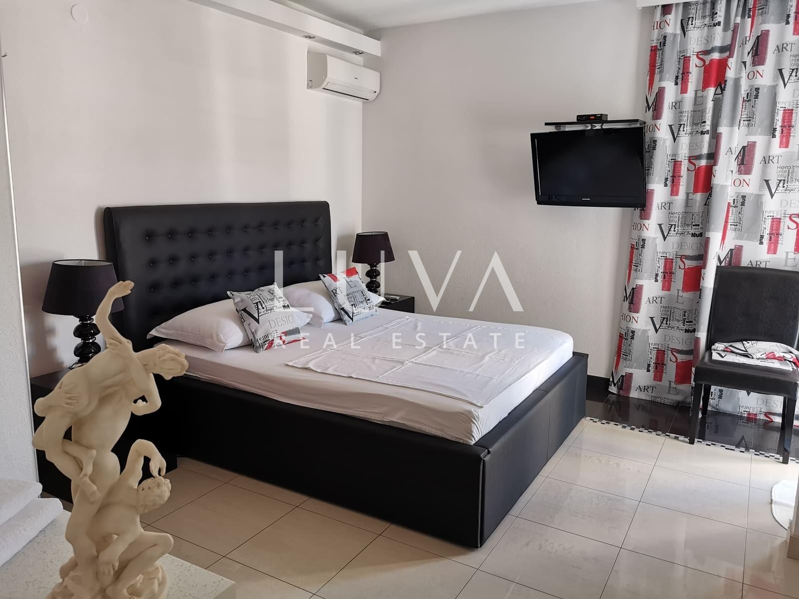 Vanjski dio kuće obogaćen je bazenom s kojeg se pruža impresivan panoramski pogled na more, savršen za opuštanje tijekom toplih ljetnih dana. Prostrana okućnica nudi brojne mogućnosti uređenja dodatnih sadržaja, dok osigurana parkirna mjesta za četiri automobila dodatno povećavaju praktičnost nekretnine.