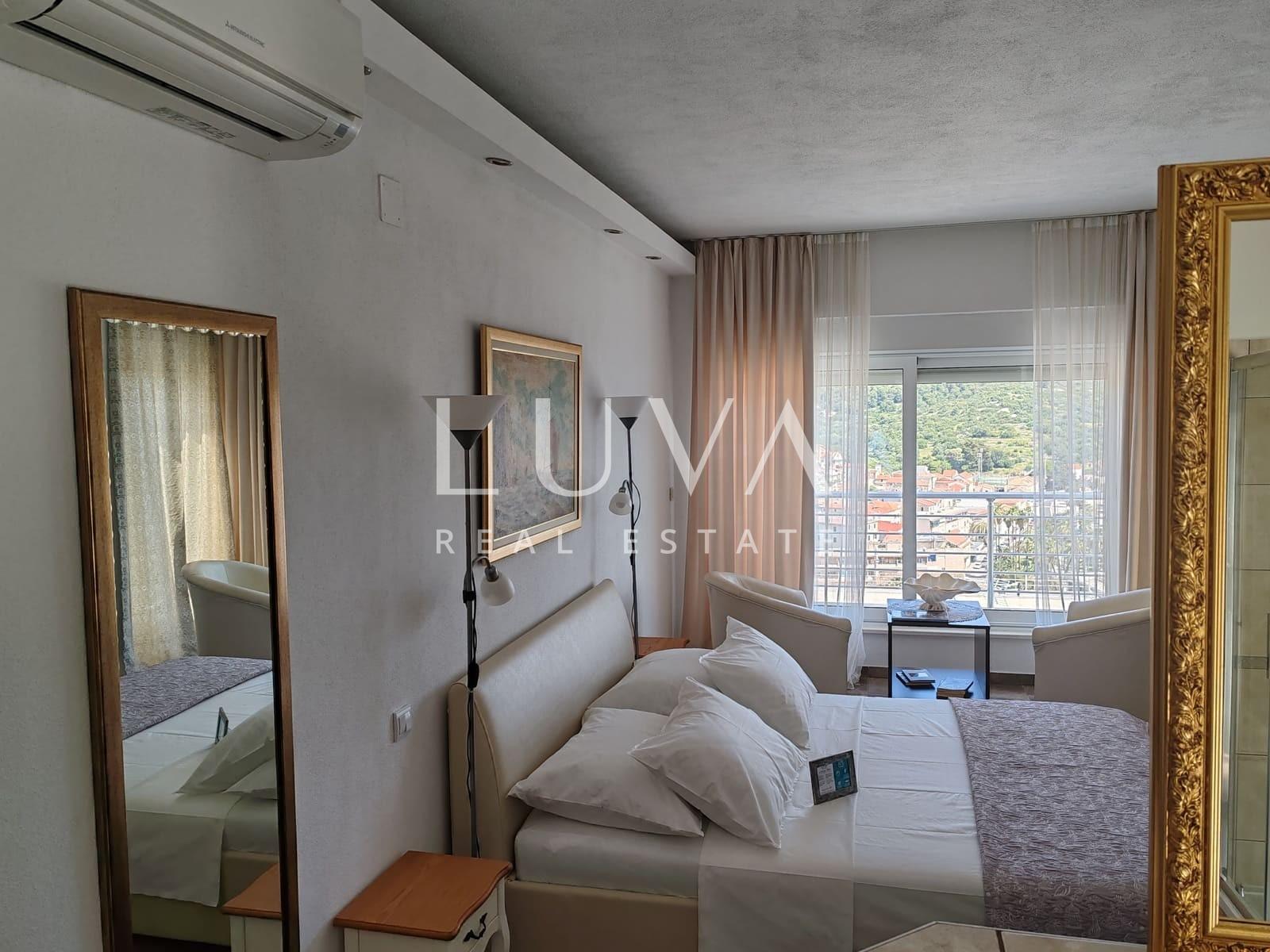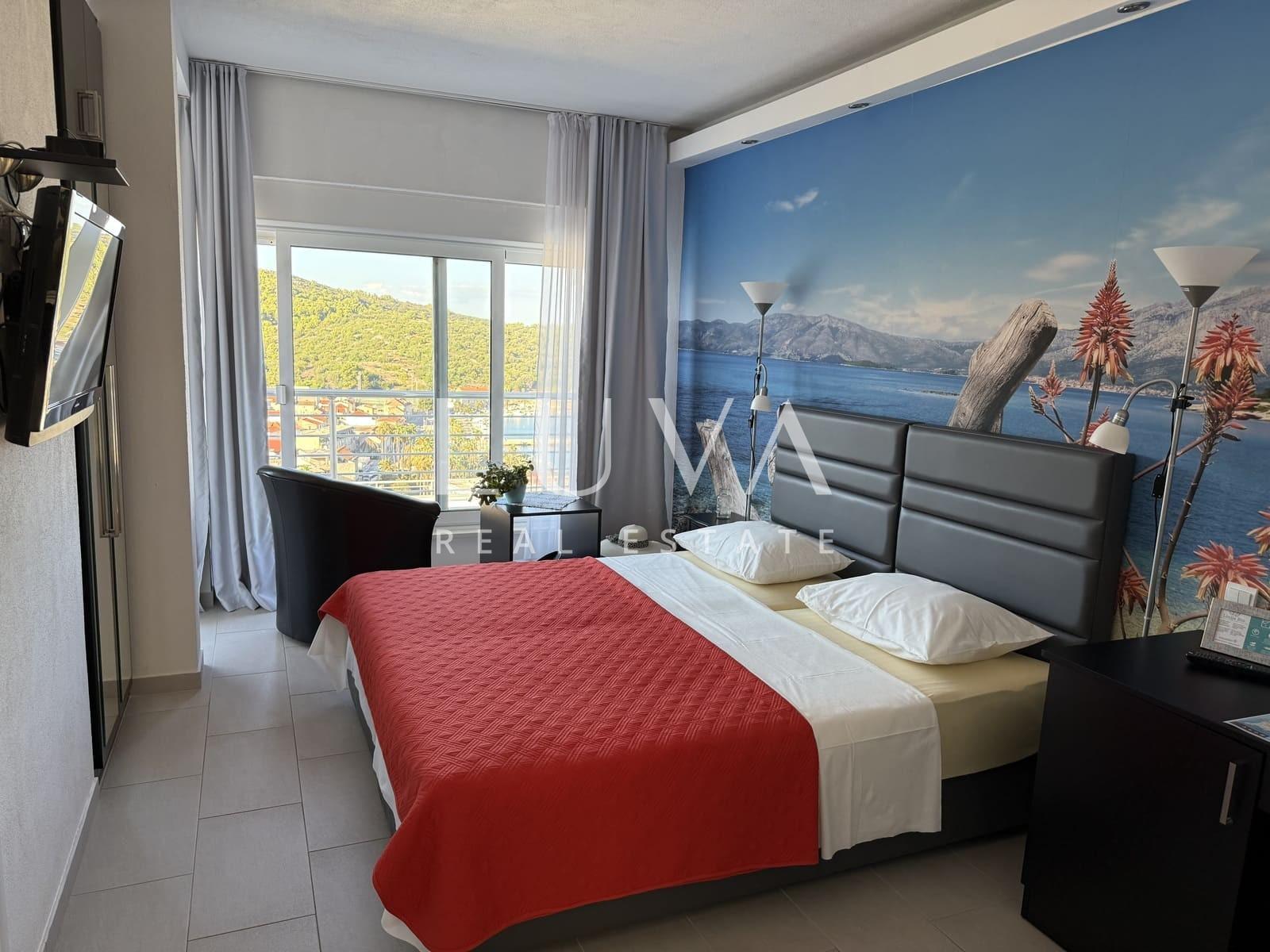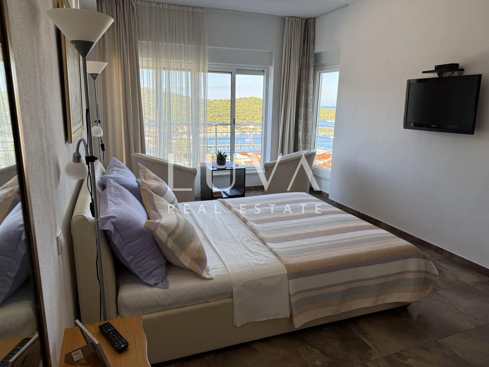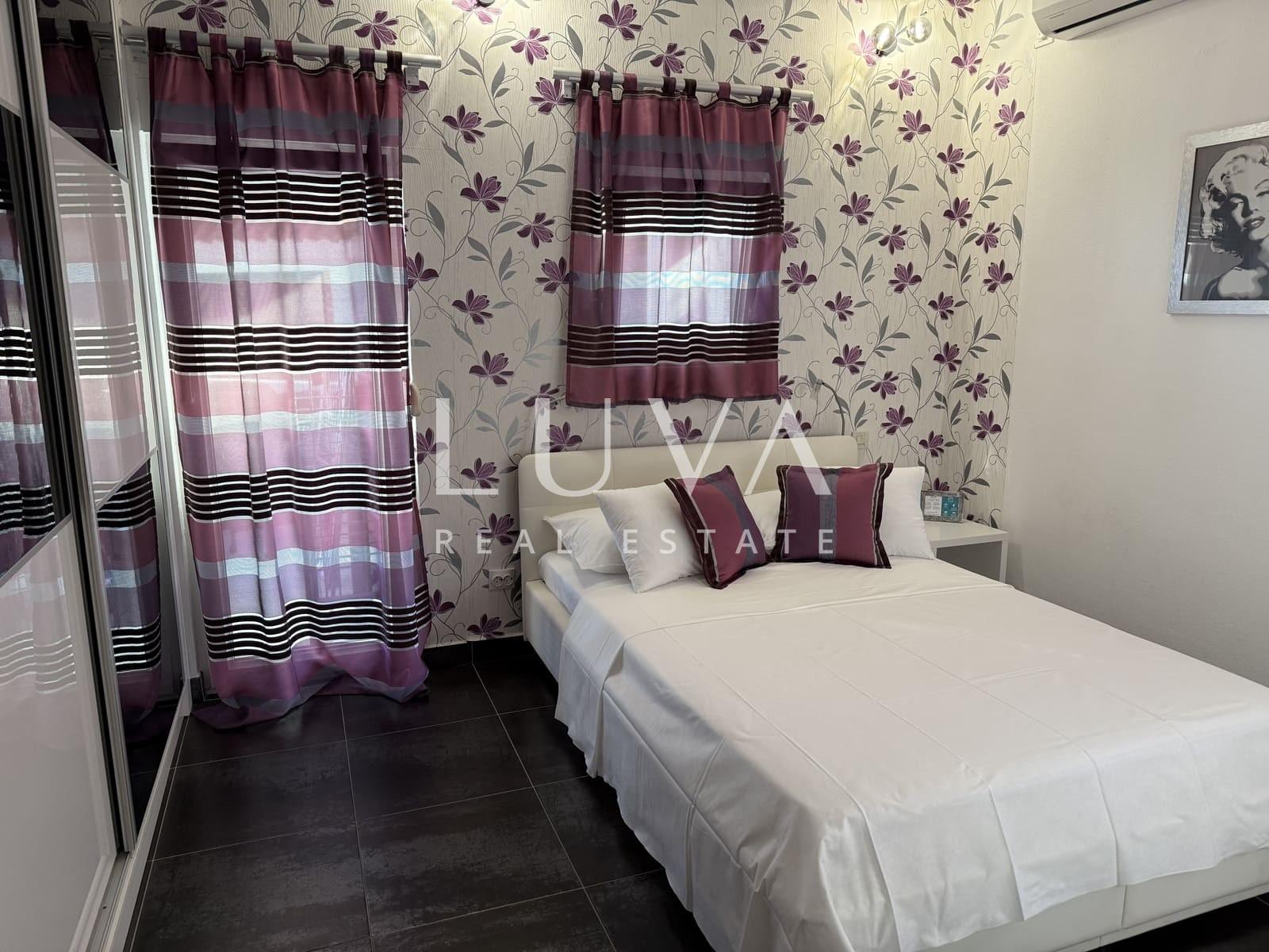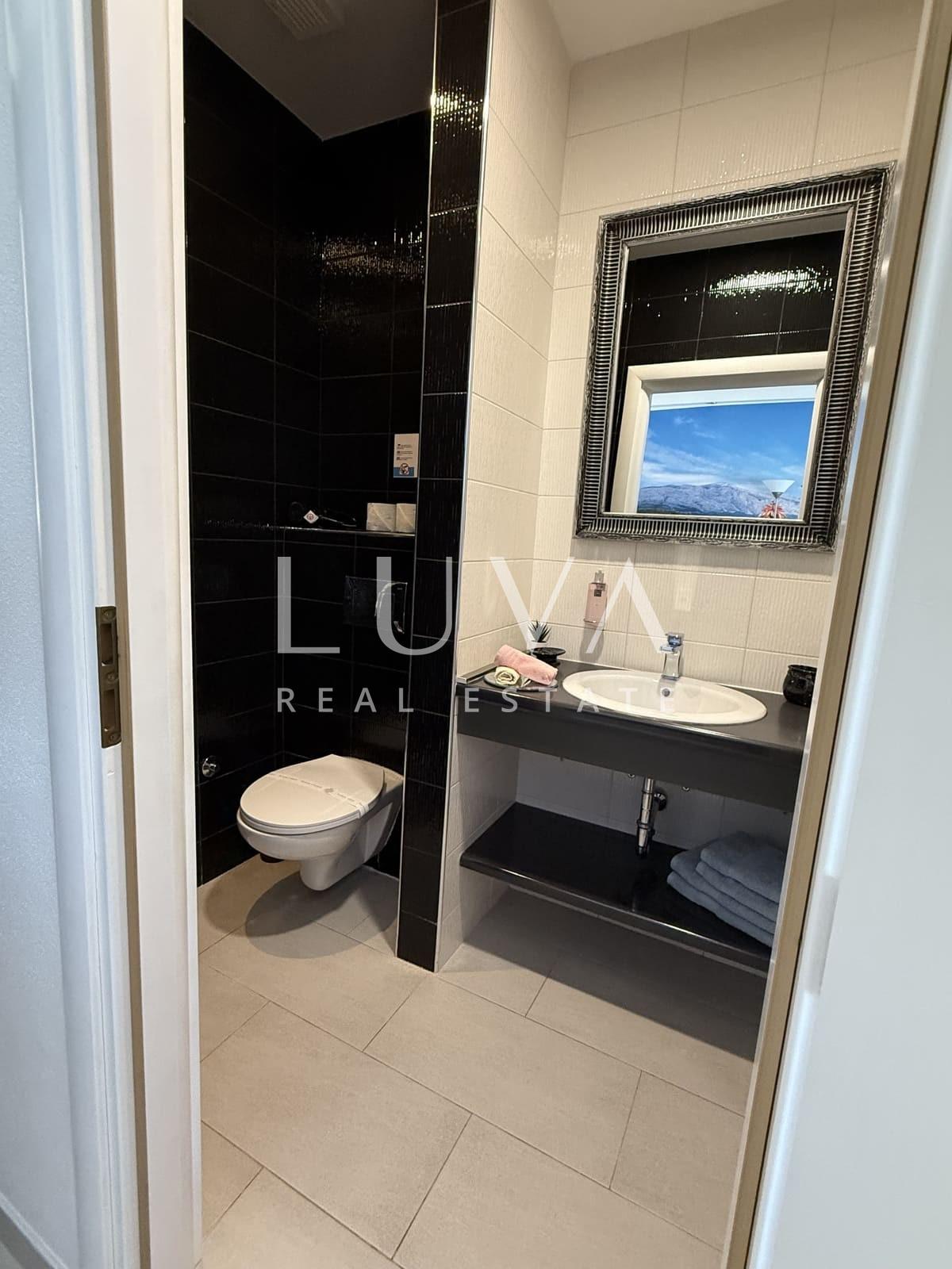 Vanjski dio kuće obogaćen je bazenom s kojeg se pruža impresivan panoramski pogled na more, savršen za opuštanje tijekom toplih ljetnih dana. Prostrana okućnica nudi brojne mogućnosti uređenja dodatnih sadržaja, dok osigurana parkirna mjesta za četiri automobila dodatno povećavaju praktičnost nekretnine.
