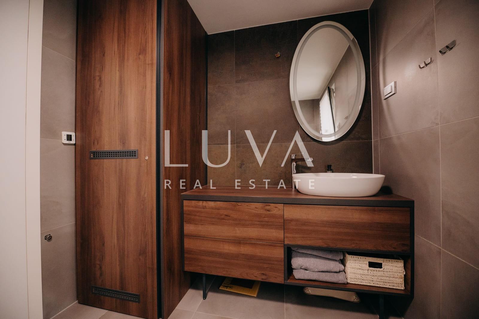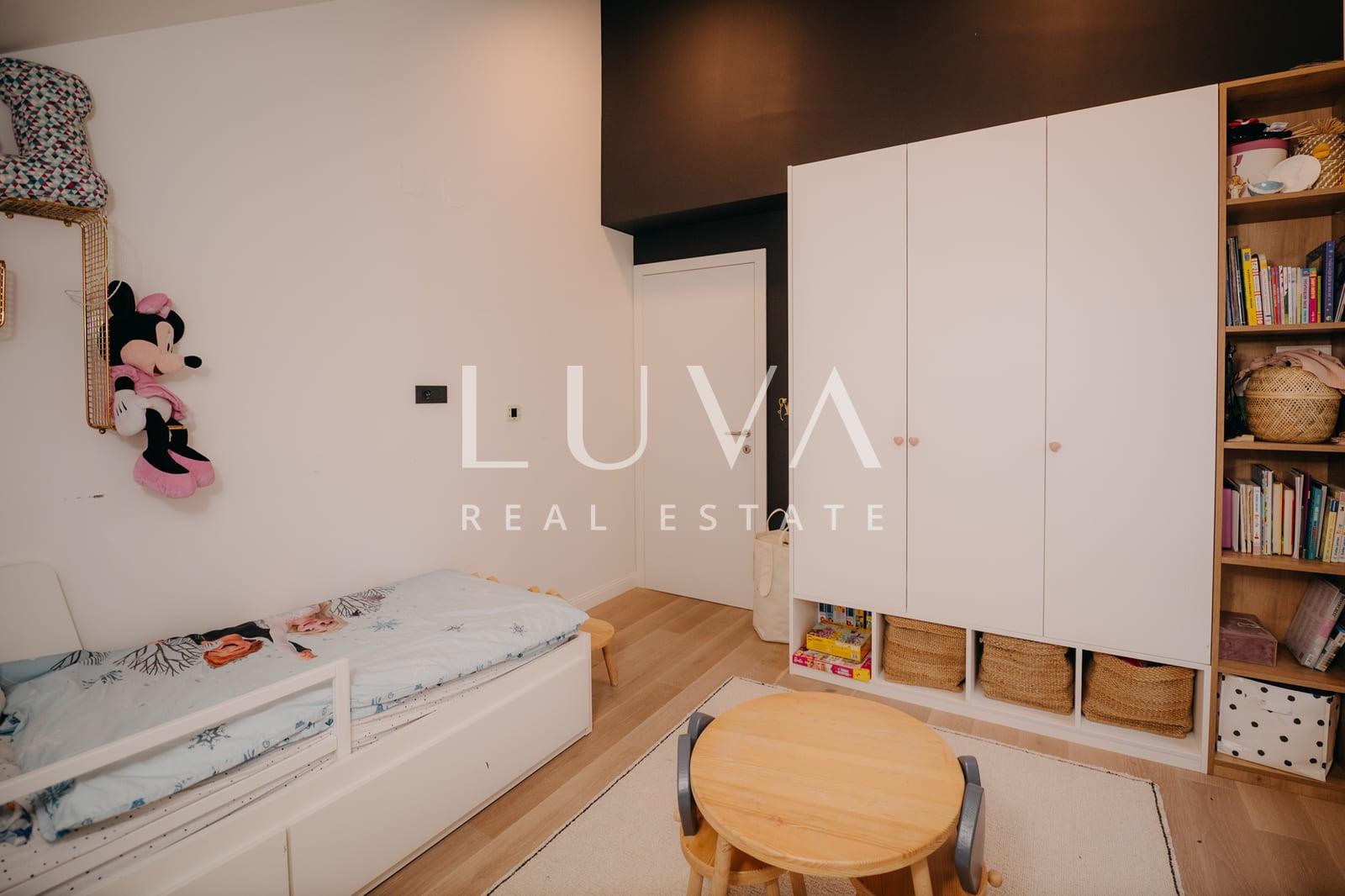 Ono što ovu nekretninu čini posebnom jest iznimno visok standard opremljenosti, od dizajnerskog namještaja (Prostoria, Natuzzi) i kvalitetne stolarije, do kompletne linije Miele uređaja te Knapić kuhinje.