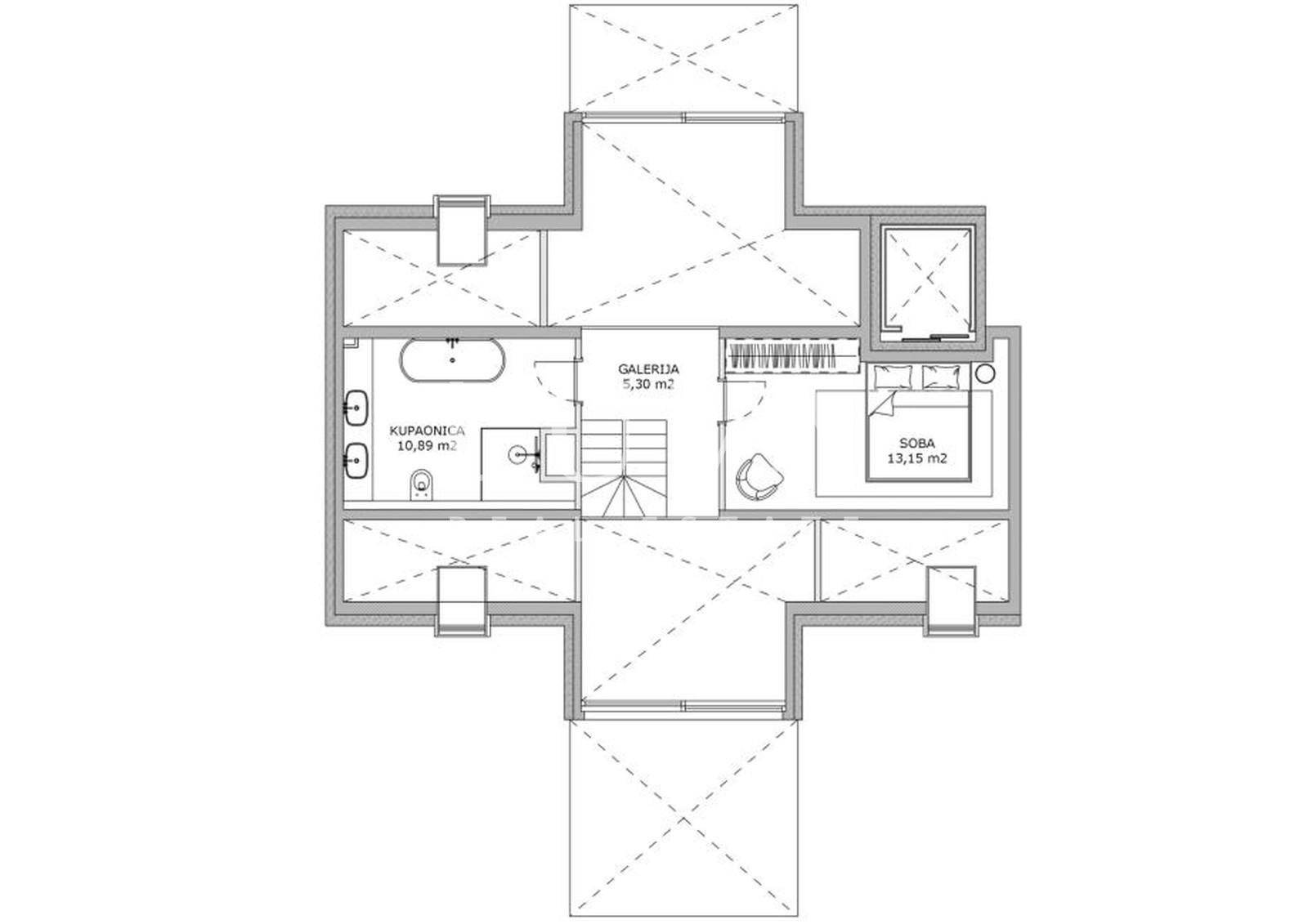 Uz VELUX krovne prozore s daljinskim upravljanjem i funkcijom automatskog zatvaranja pri padalinama, najveći naglasak stavljen je na udobnost svakodnevice zahvaljujući stropnom grijanju i hlađenju s dizalicama topline i individualnom regulacijom temperature po prostorijama, što osigurava tihu, energetski učinkovitu i zdravu mikroklimu bez radijatora i buke klima uređaja.