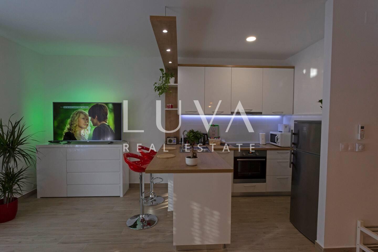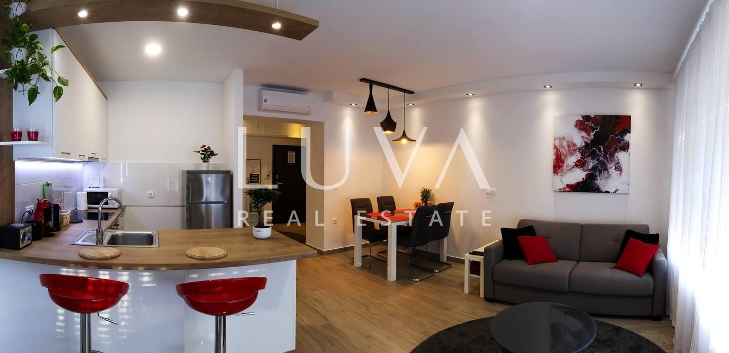 Zahvaljujući izvrsnoj lokaciji, apartman se nalazi u blizini javnog prijevoza, trgovina, škola i svih bitnih gradskih sadržaja. Idealan je izbor kako za vlastito stanovanje, tako i za nastavak već iznimno uspješnog turističkog najma bez dodatnih ulaganja.