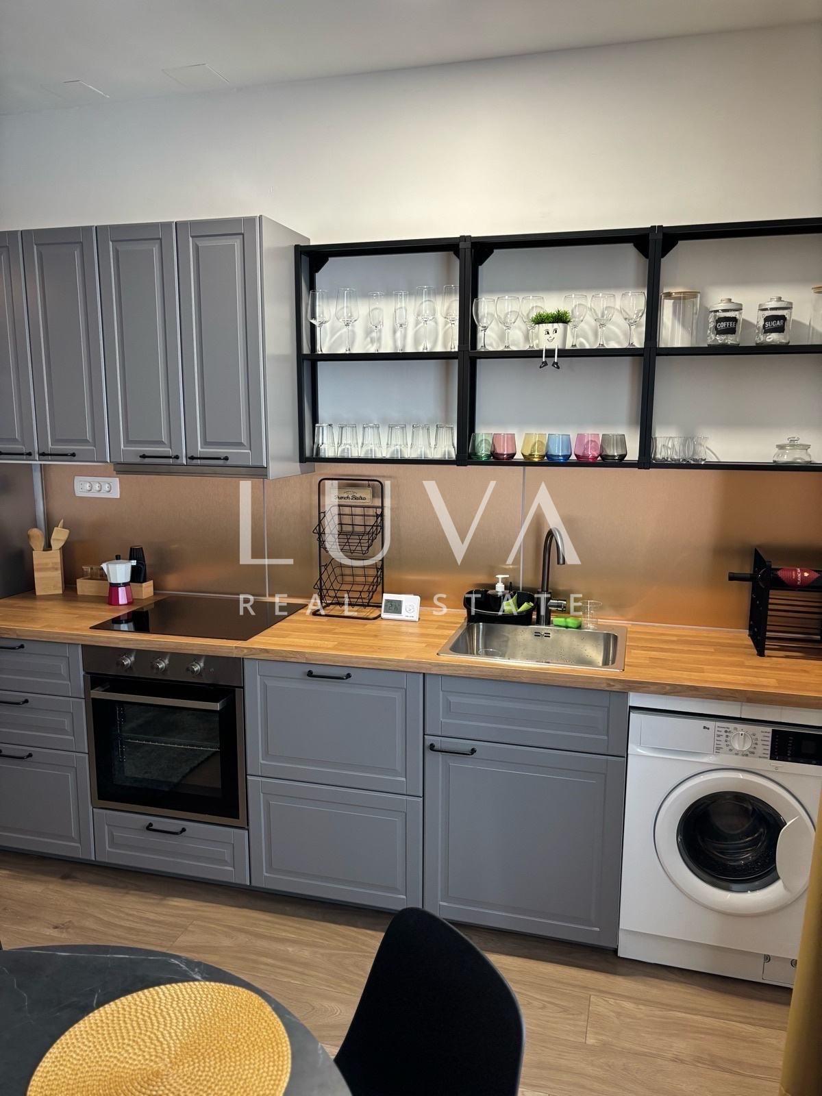 Stan je u potpunosti obnovljen i opremljen u siječnju 2025. godine te se sastoji od ulaznog prostora, open space dnevnog boravka s kuhinjom i blagovaonicom, spavaće sobe iz koje se ulazi u kupaonicu s tuš kabinom, kao i zasebnog WC-a. Raspored prostora osmišljen je funkcionalno i prilagođen urbanom načinu života.